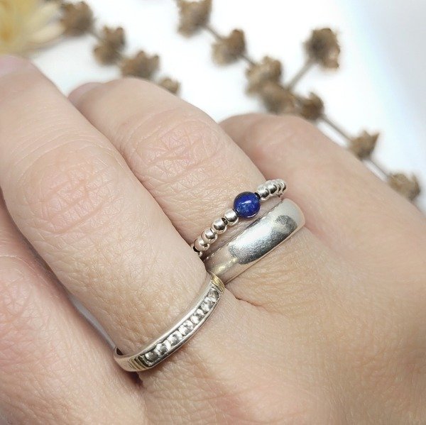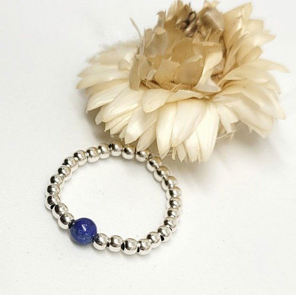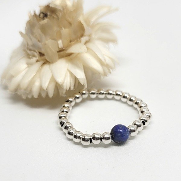 💫Anillo elastizado hecho a mano con bolitas de plata 925 y piedra lapislázuli natural