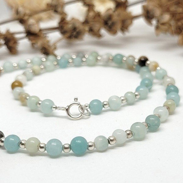 💫Choker hecho a mano con piedra amazonita natural y bolitas de plata 925