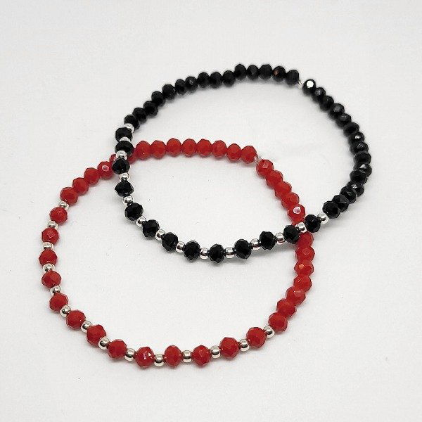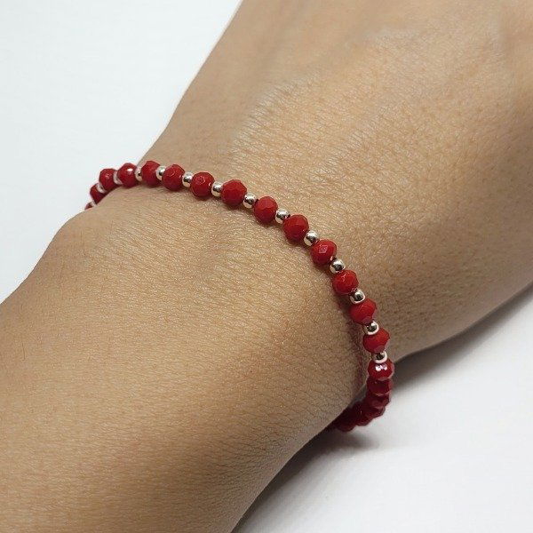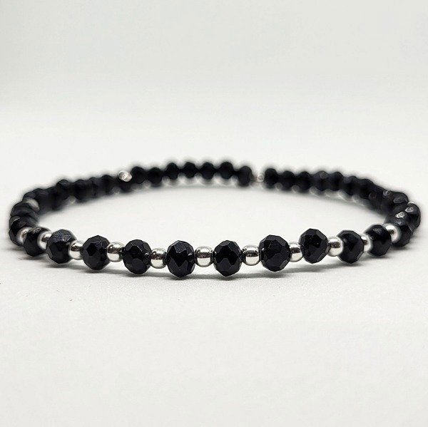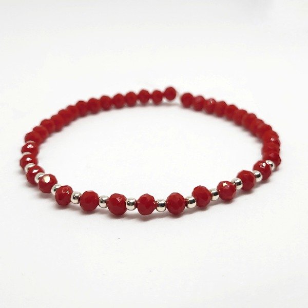 💫Pulsera elastizada hecha a mano con cristal 4mm y cuentas de plata de 2,5mm