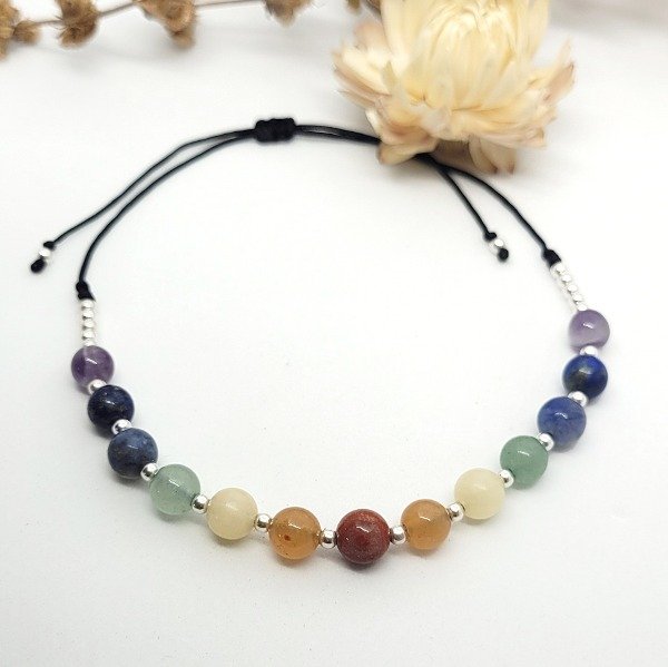 🌈✨ Esta pulsera combina las piedras naturales asociadas a cada uno de los chakras, ayudando a equilibrar la energía del cuerpo y la mente. Se cree que cada piedra favorece un aspecto distinto: la vitalidad, la creatividad, la confianza, el amor, la comunicación, la intuición y la conexión espiritual. Es una pieza vibrante que no solo acompaña tu estilo, sino también tu bienestar energético.