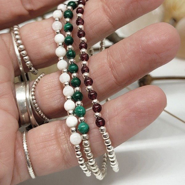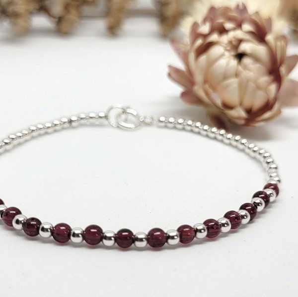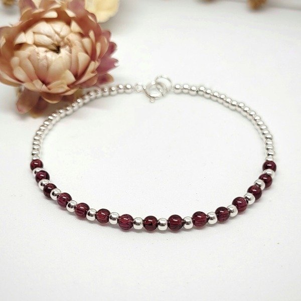 🔥Pulsera hecha a mano con bolitas de plata 925 y piedra granate natural