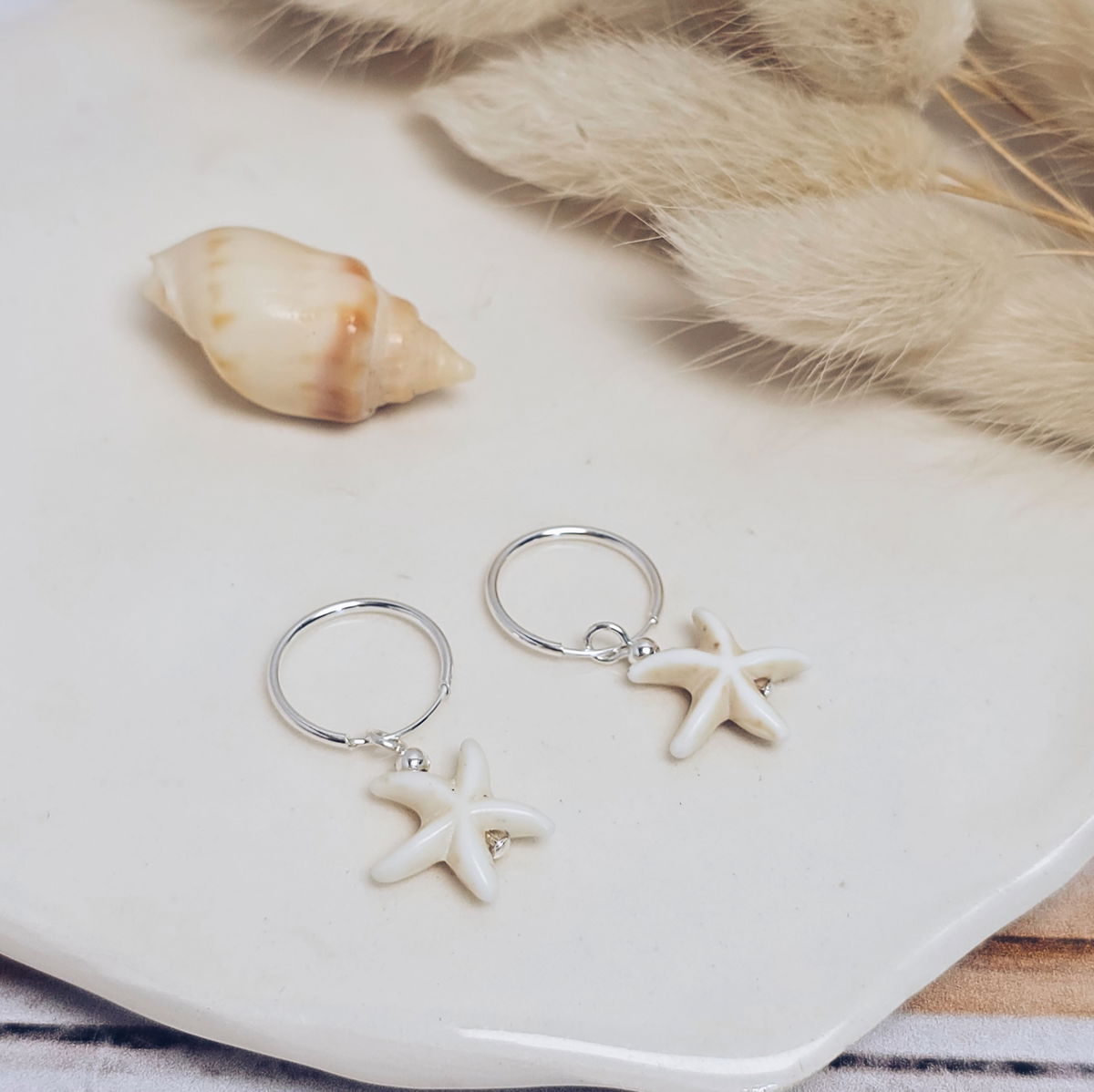 💫Argollitas de plata 925 de 14mm con dije de estrella de mar de resina