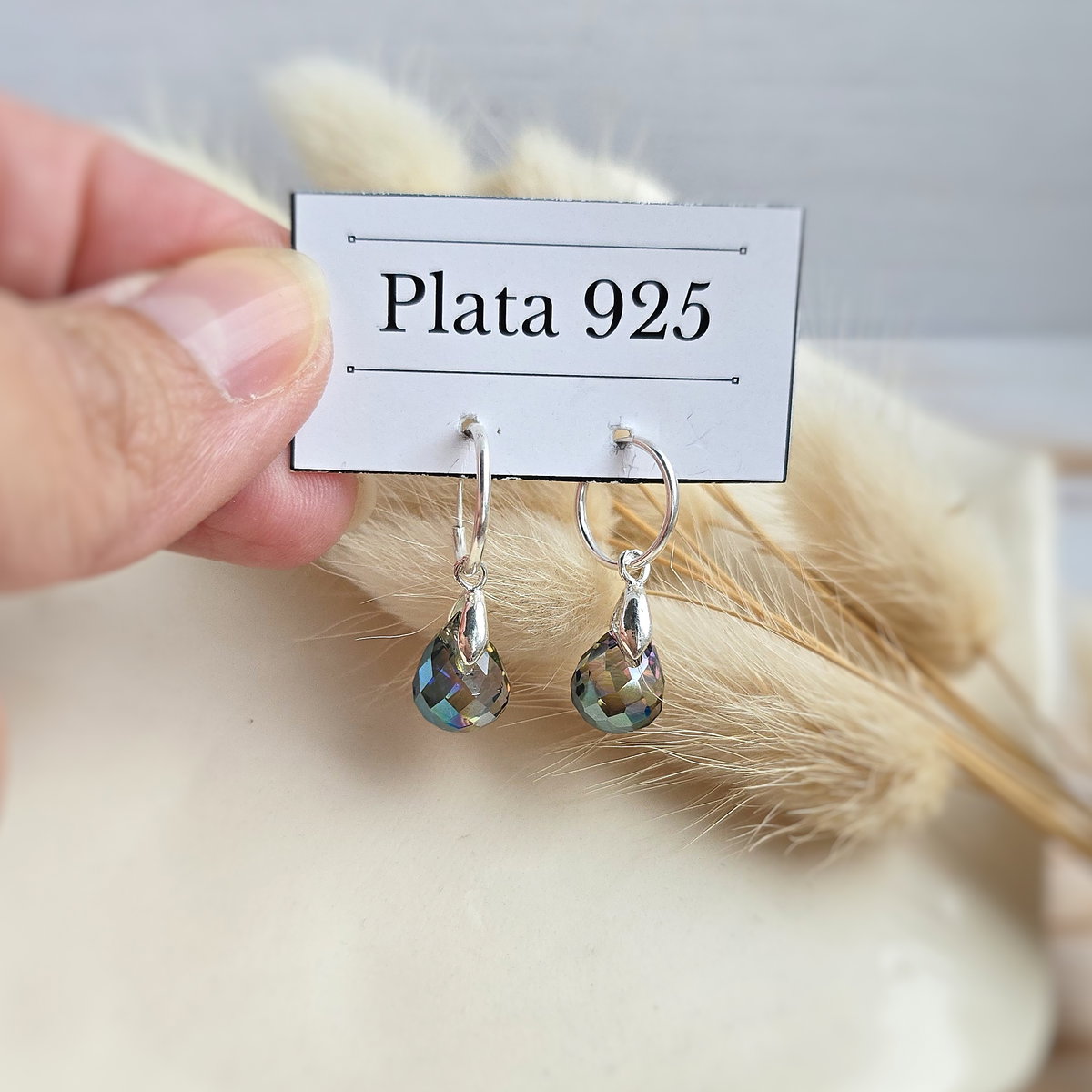 Argollitas de plata 925 de 12mm con dije de plata y cristal de gota