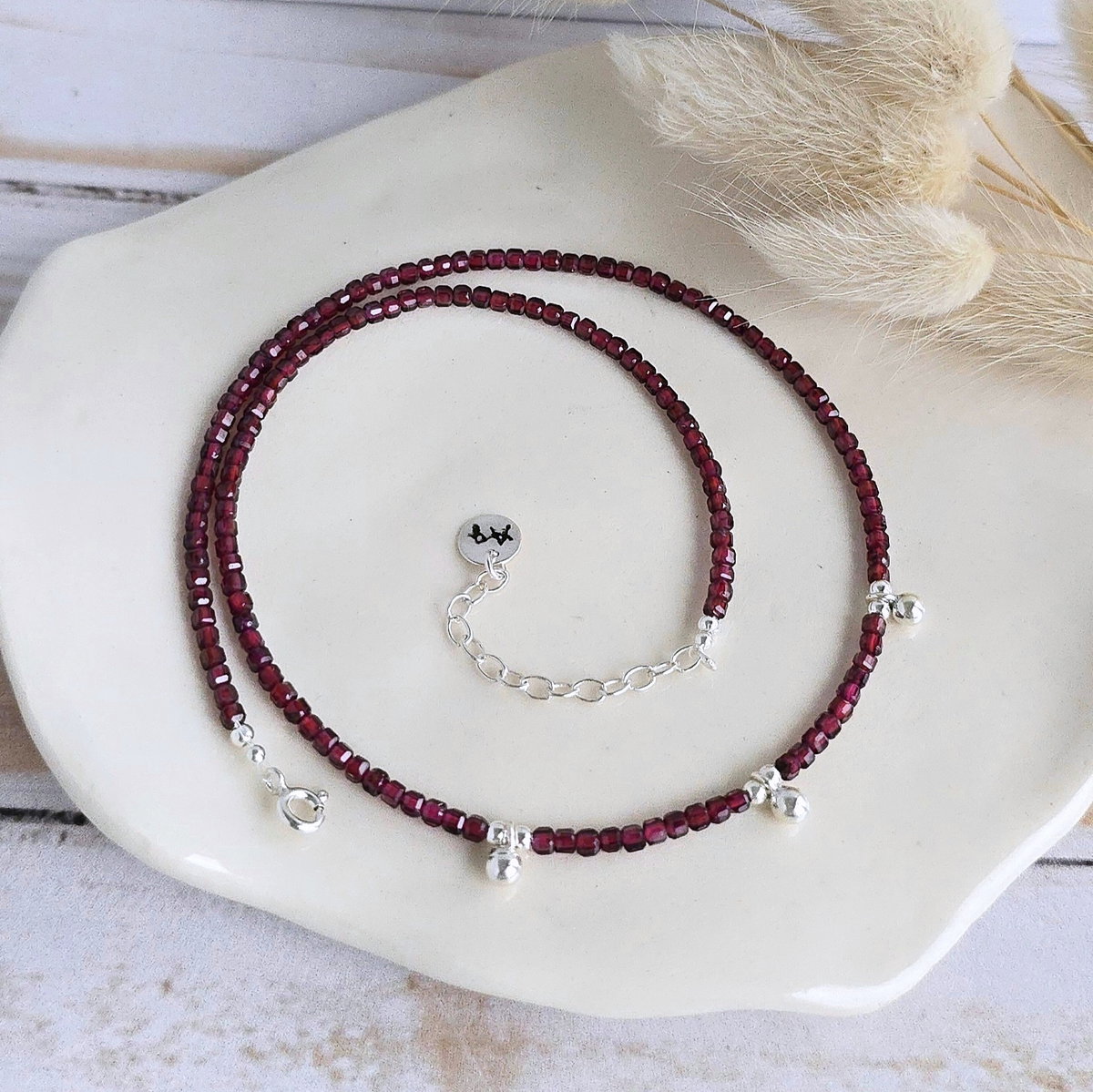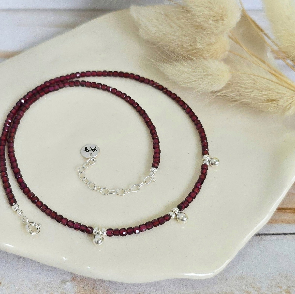 ❤️Choker de cubitos de piedra Granate natural y cuentas de plata 925