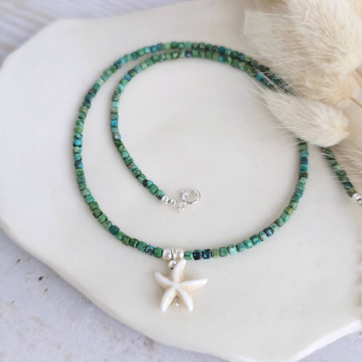 💚Choker hecho con cubitos de piedra natural turquesa de Hubei (estabilizada para mayor durabilidad). Dije de plata 925 y estrella de piedra reconstituida.