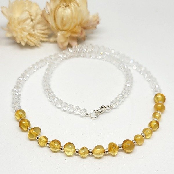 💫Choker con ámbar natural, cuentas de plata y cristal.
