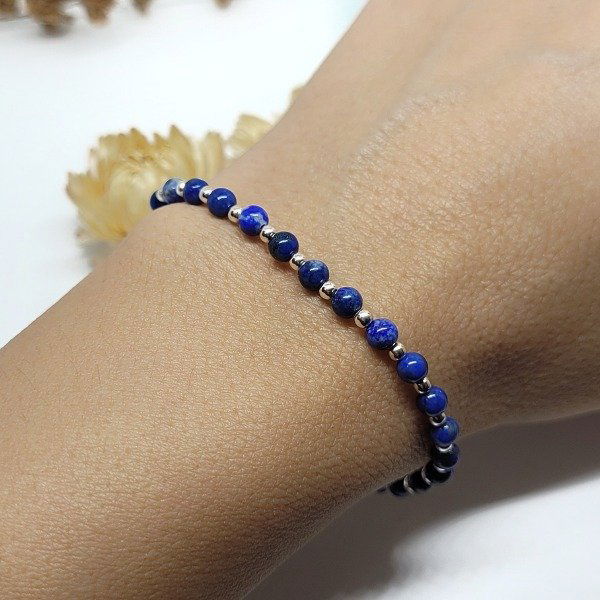 💫La pulsera Zoe Deluxe está hecha a mano con lapislázuli natural y cuentas de plata 925. Es elastizada, cómoda y se adapta fácilmente a tu muñeca.