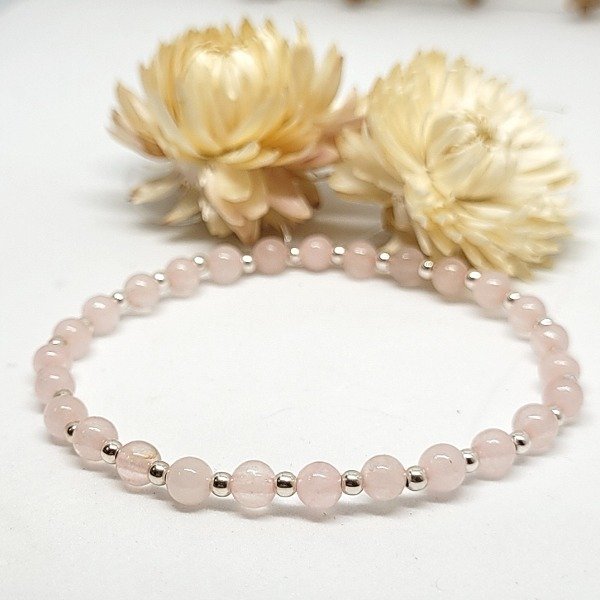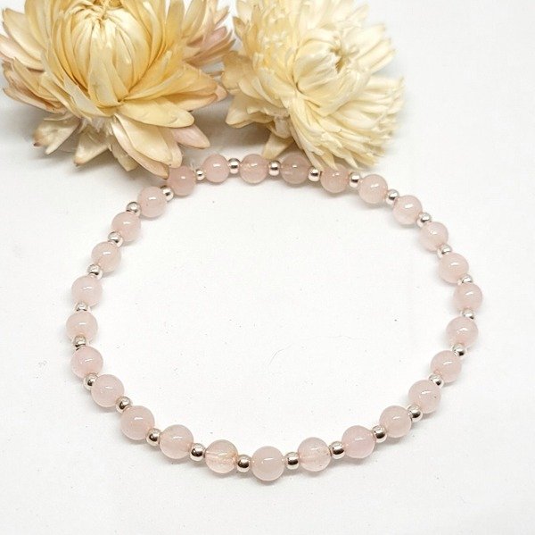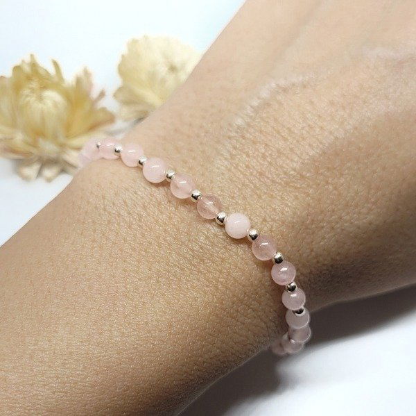 💫La pulsera Dana Deluxe está hecha a mano con cuarzo rosa natural y cuentas de plata 925. Es elastizada, cómoda y se adapta fácilmente a tu muñeca.