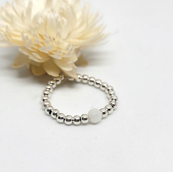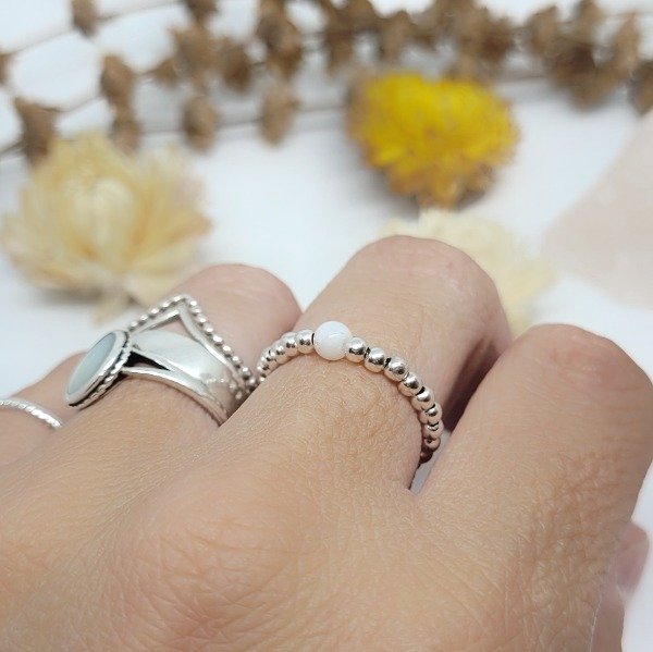 💫Anillo elastizado hecho a mano con bolitas de plata 925 y piedra luna natural
