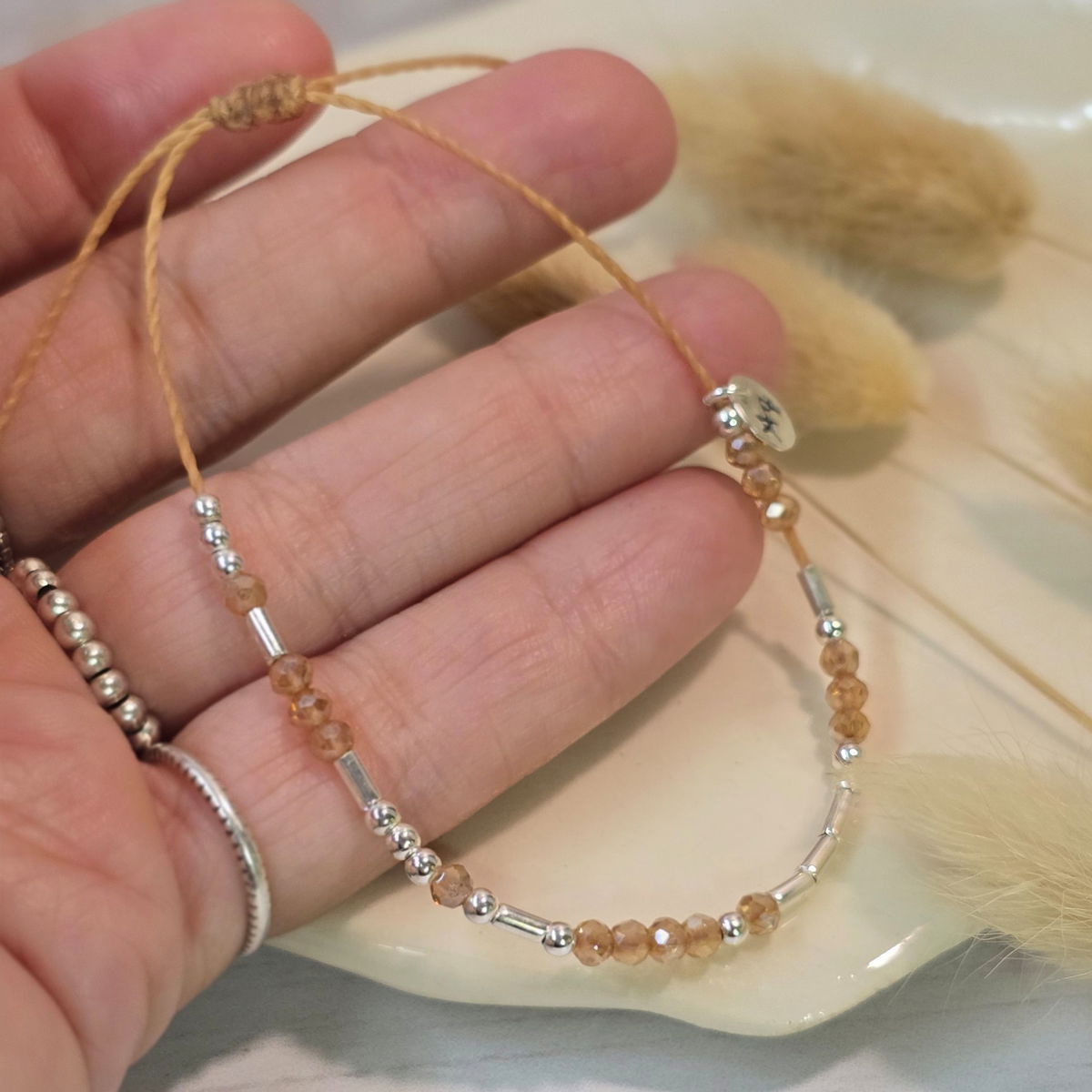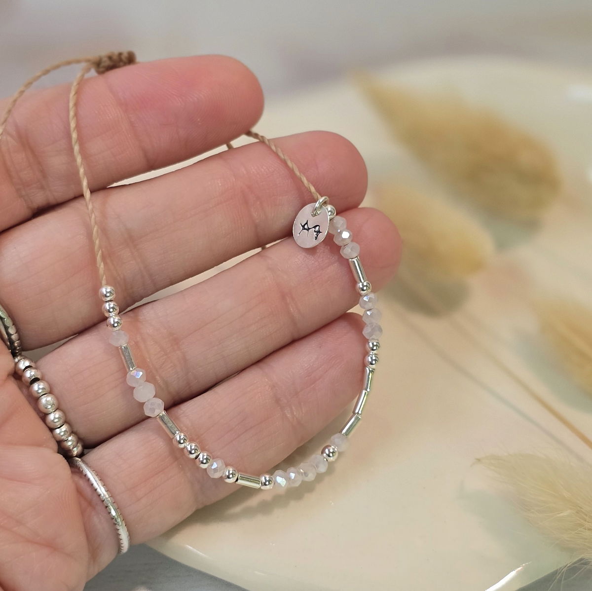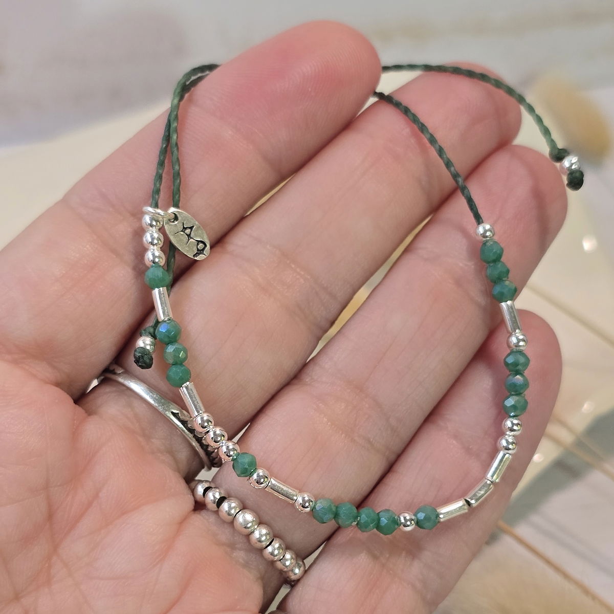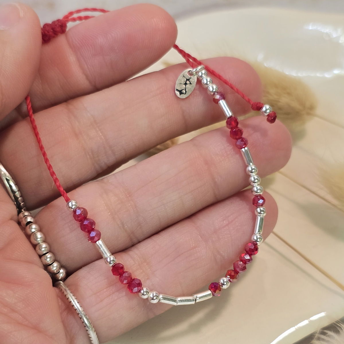 💫Pulsera hecha a mano con hilo brasilero, cristalitos 2mm y cuentas de plata 925