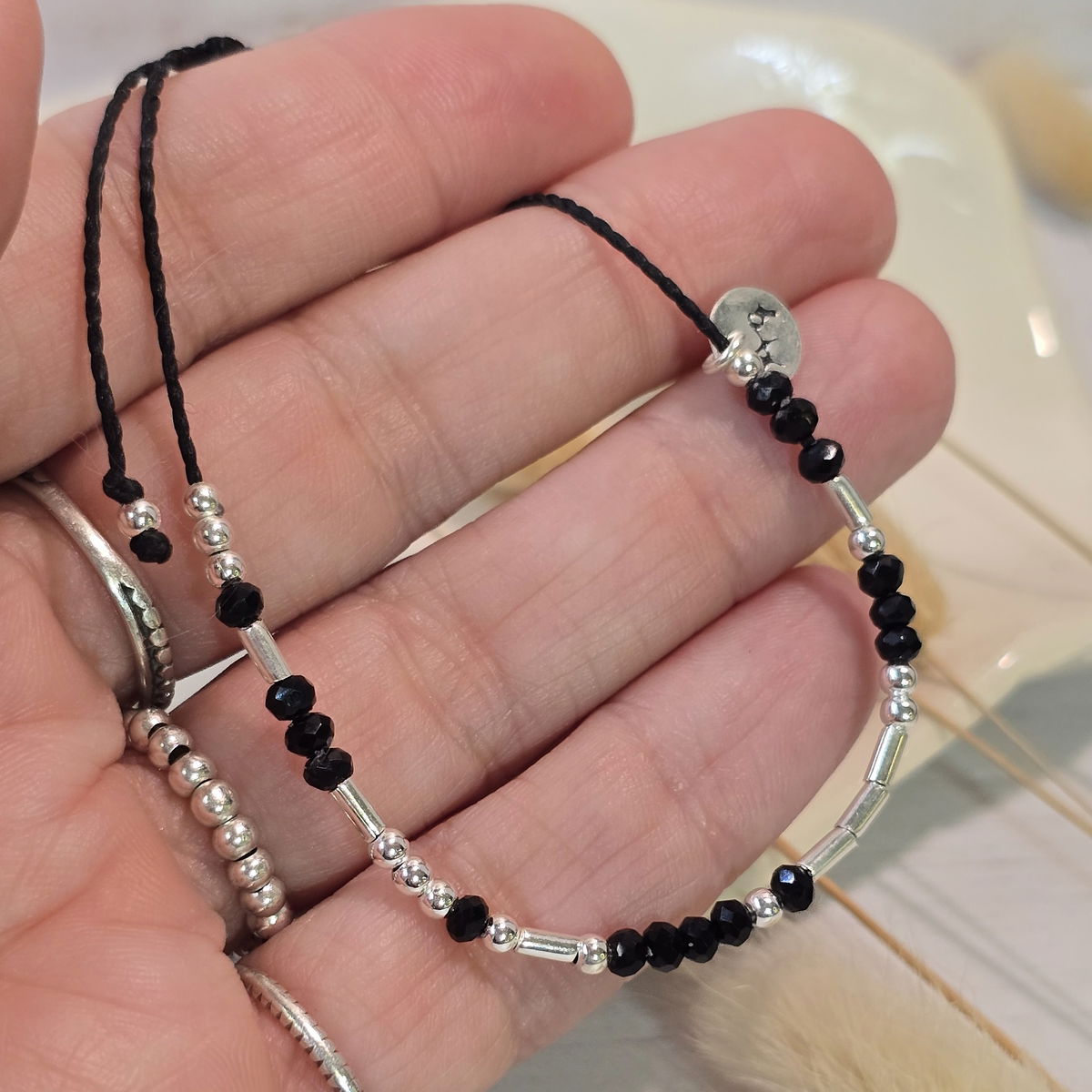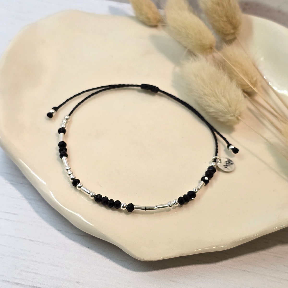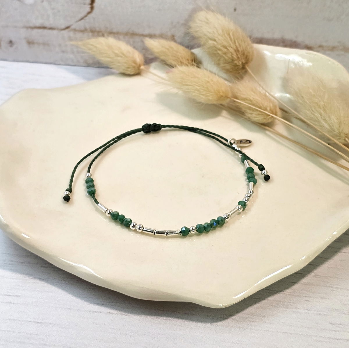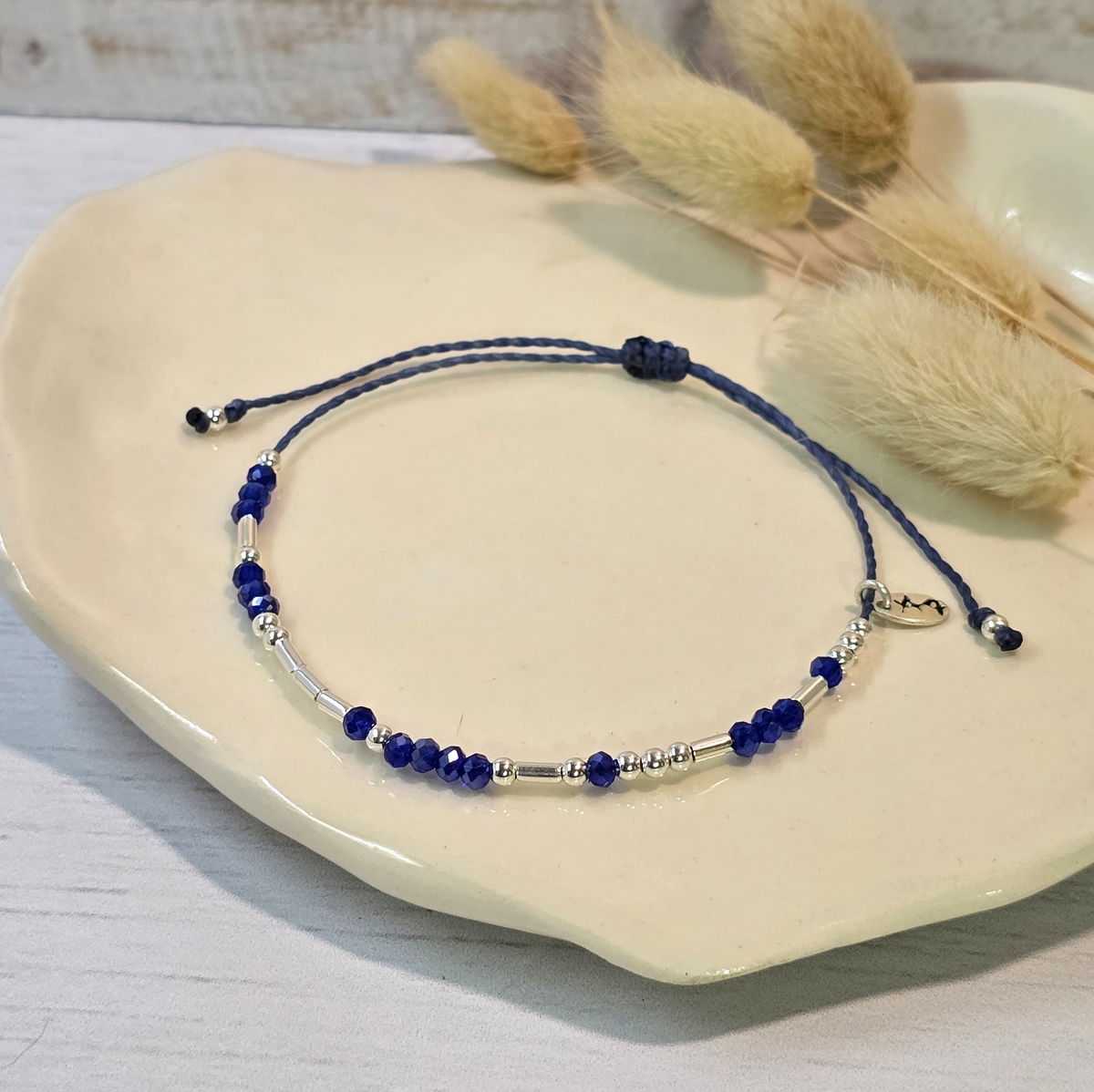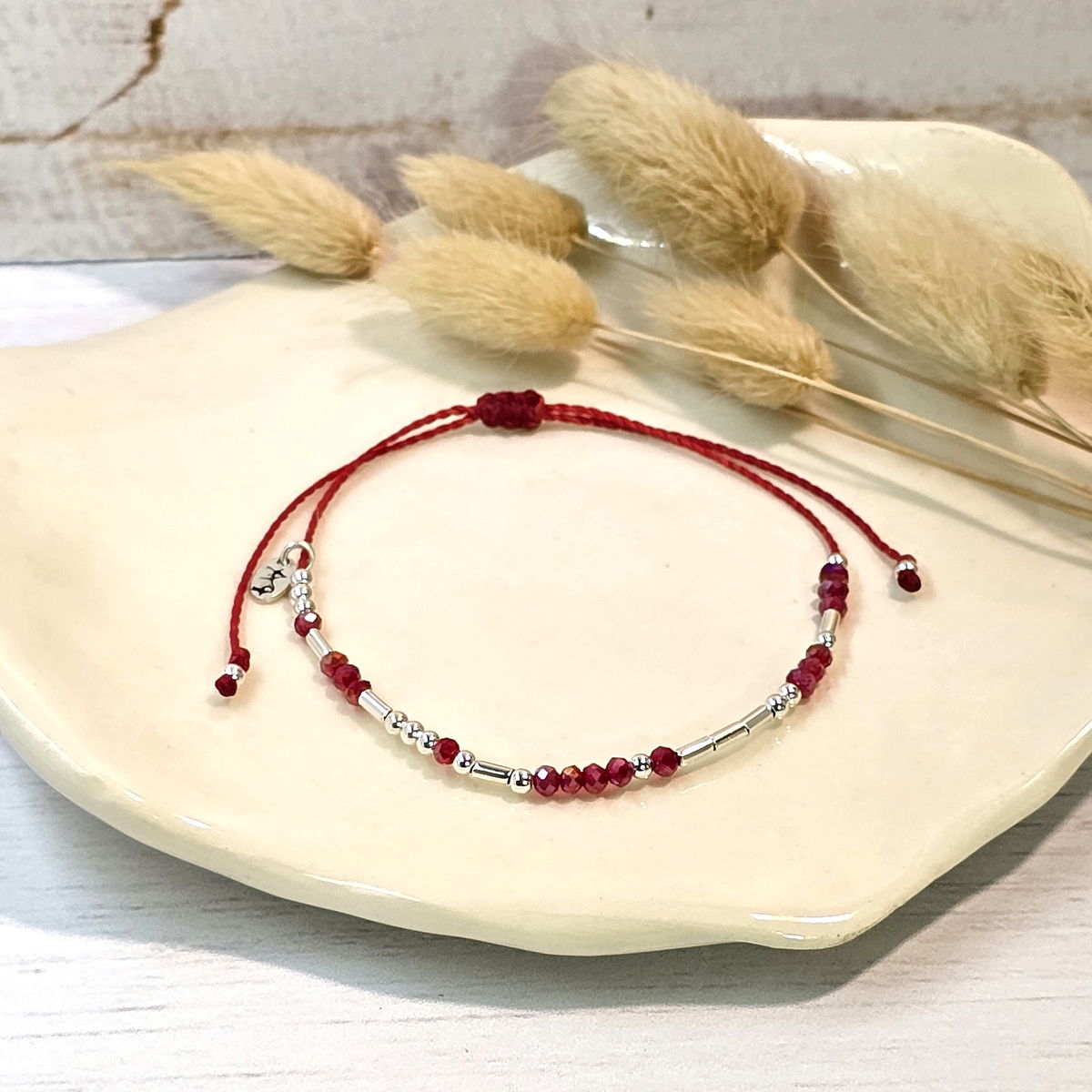 💫Pulsera hecha a mano con hilo brasilero, cristalitos 2mm y cuentas de plata 925