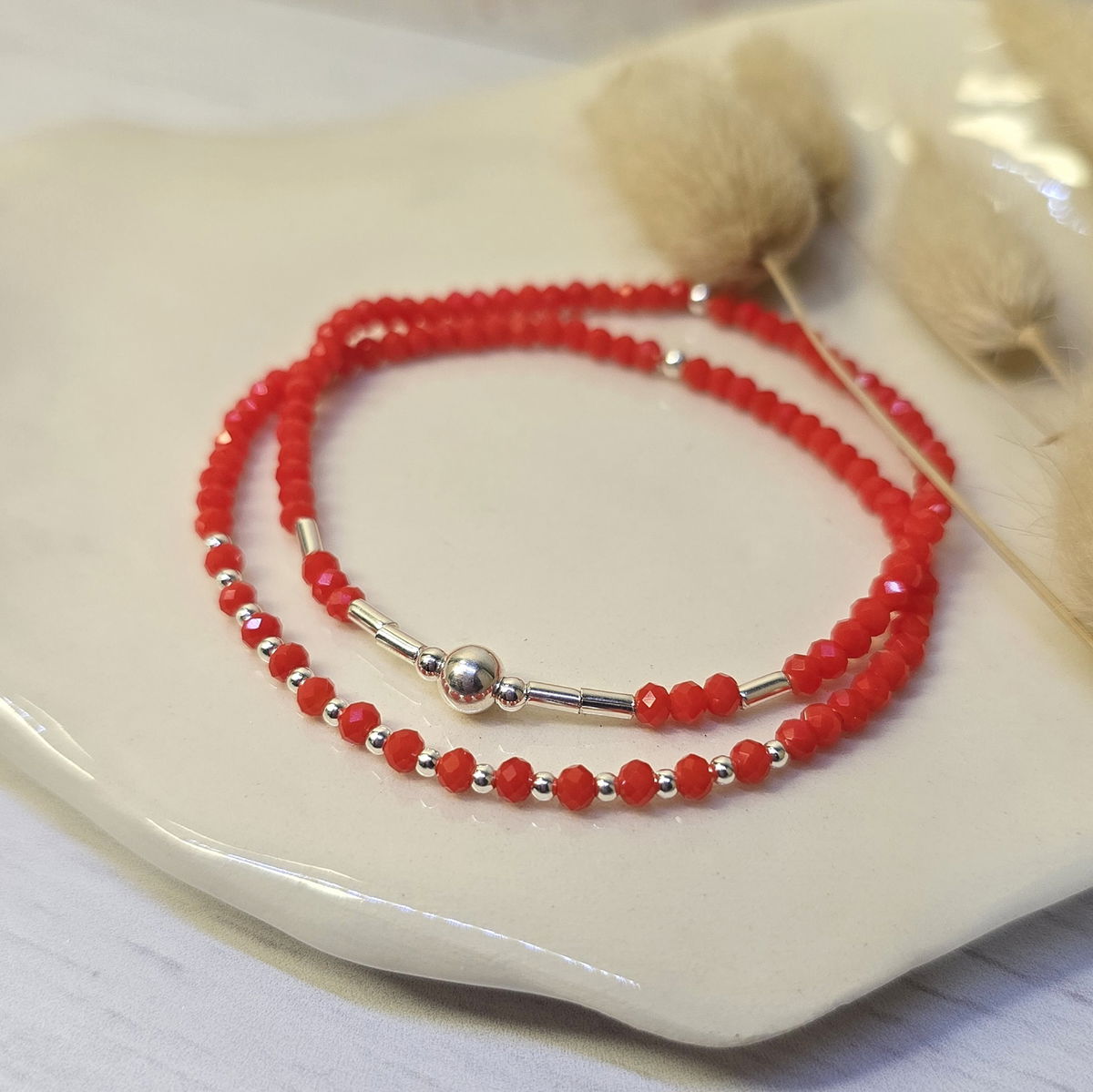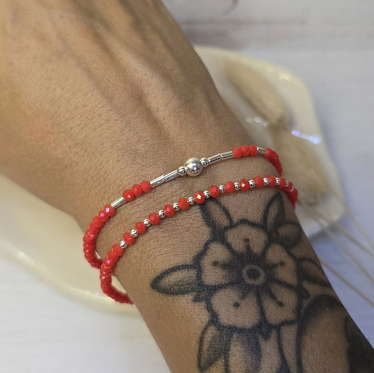 🔥Combo de dos (2) pulseras elastizadas de cristales 2mm y cuentas de plata 925