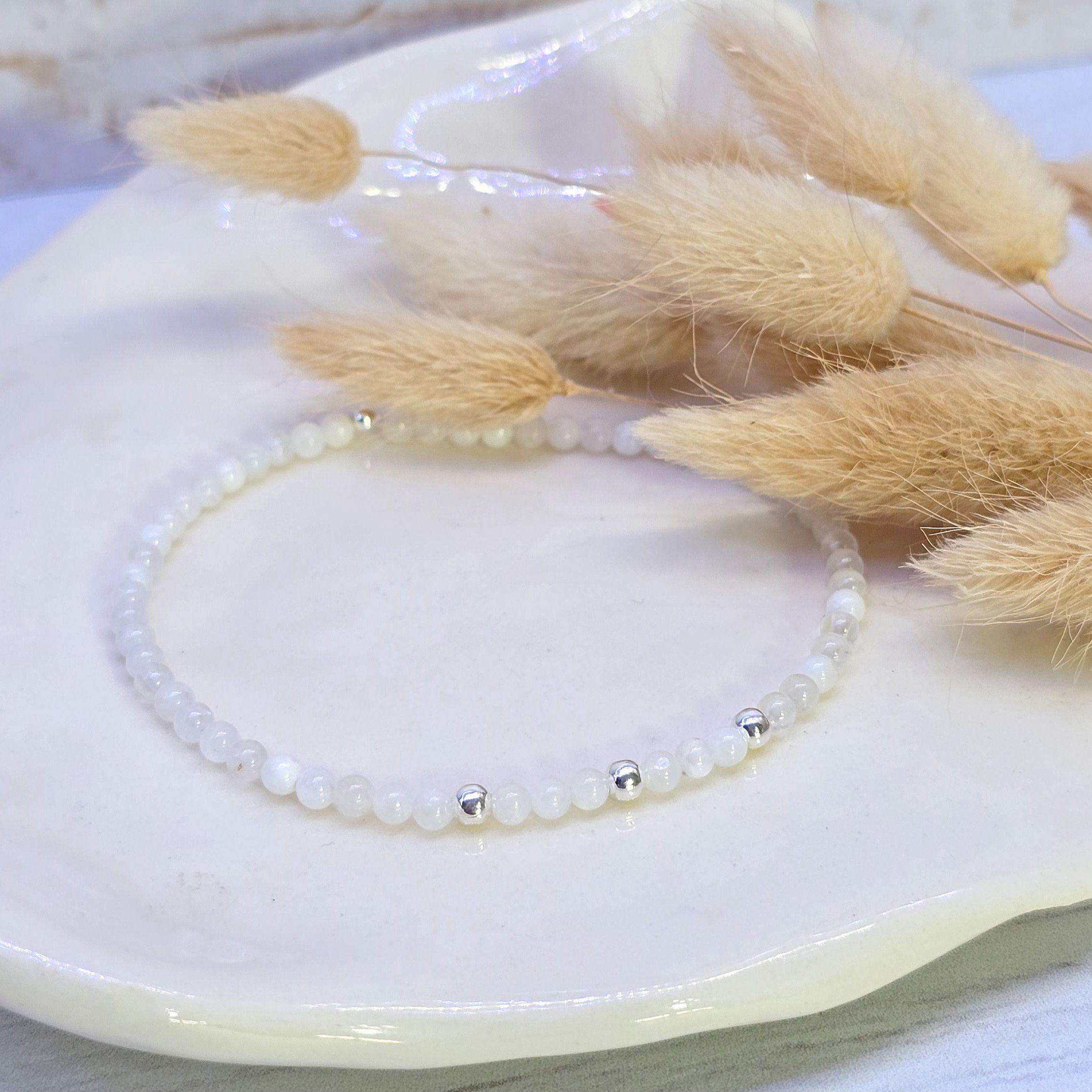 Esta pulsera elastizada está hecha con piedras naturales de 3 mm ó 2mm (según stock) y detalles en plata 925 que aportan luz y armonía. Su diseño flexible se adapta cómodamente a tu muñeca, ideal para acompañarte todos los días.