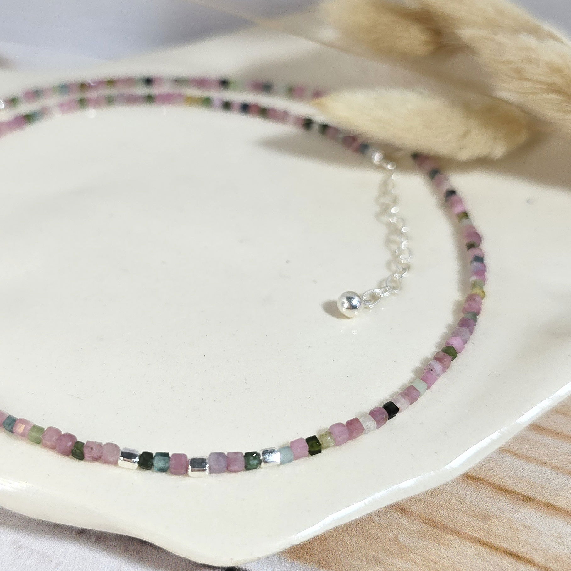 💫Choker hecho con cubitos de piedra turmalina natural y detalles en plata 925