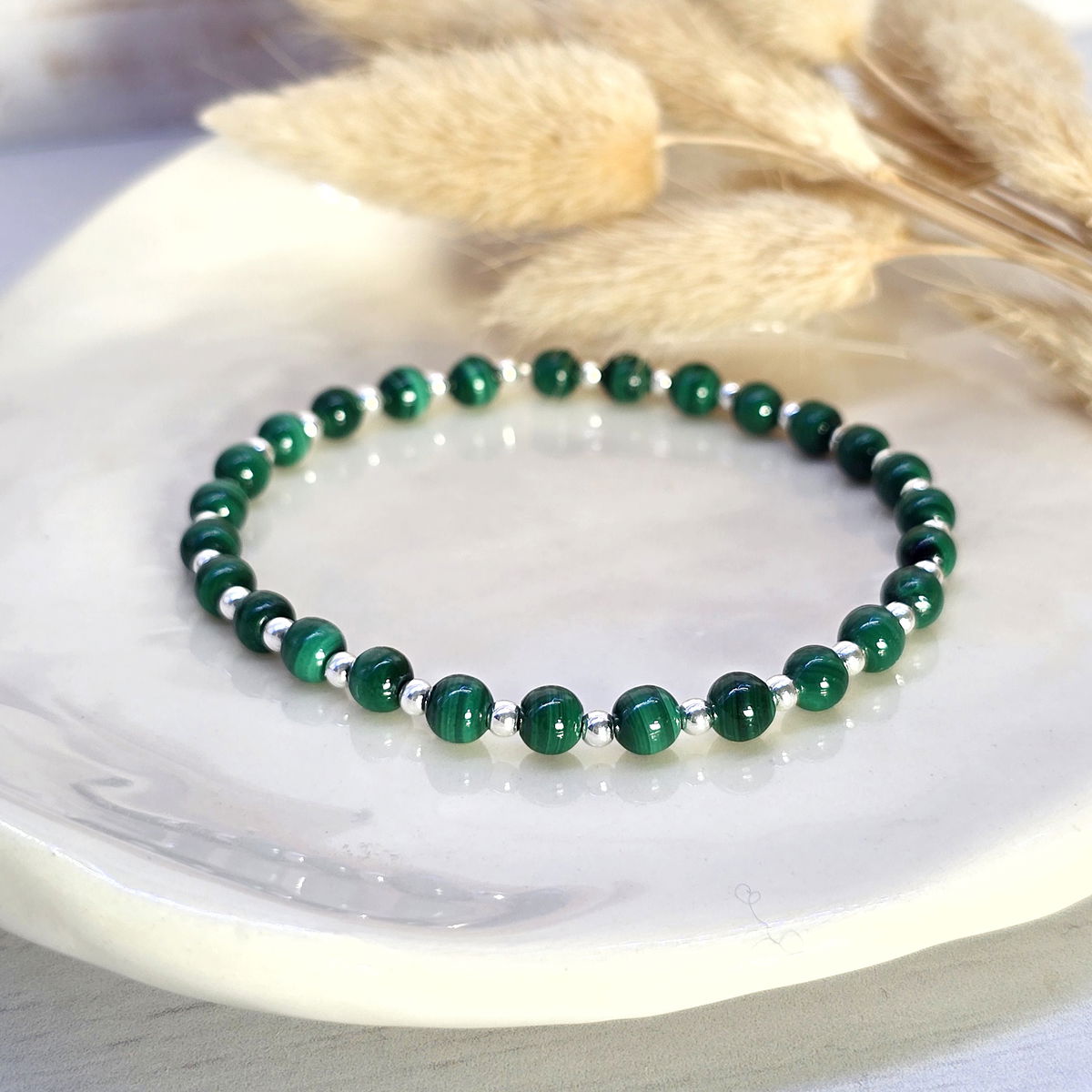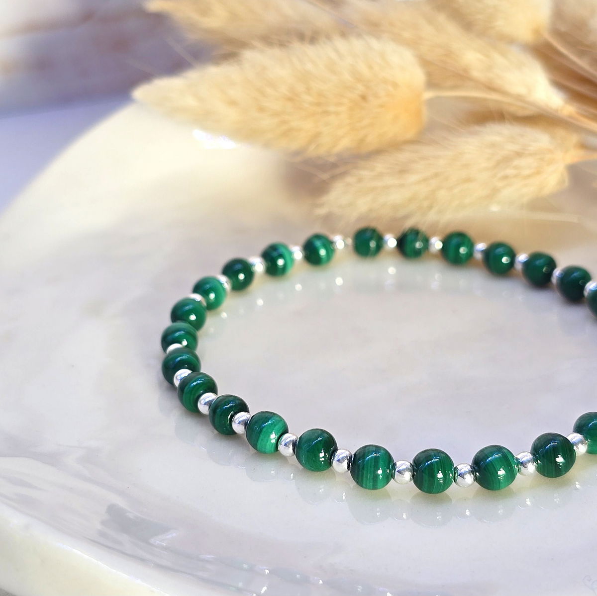 💫La pulsera Malaquita Deluxe está hecha a mano con malaquita natural y cuentas de plata 925. Es elastizada, cómoda y se adapta fácilmente a tu muñeca.