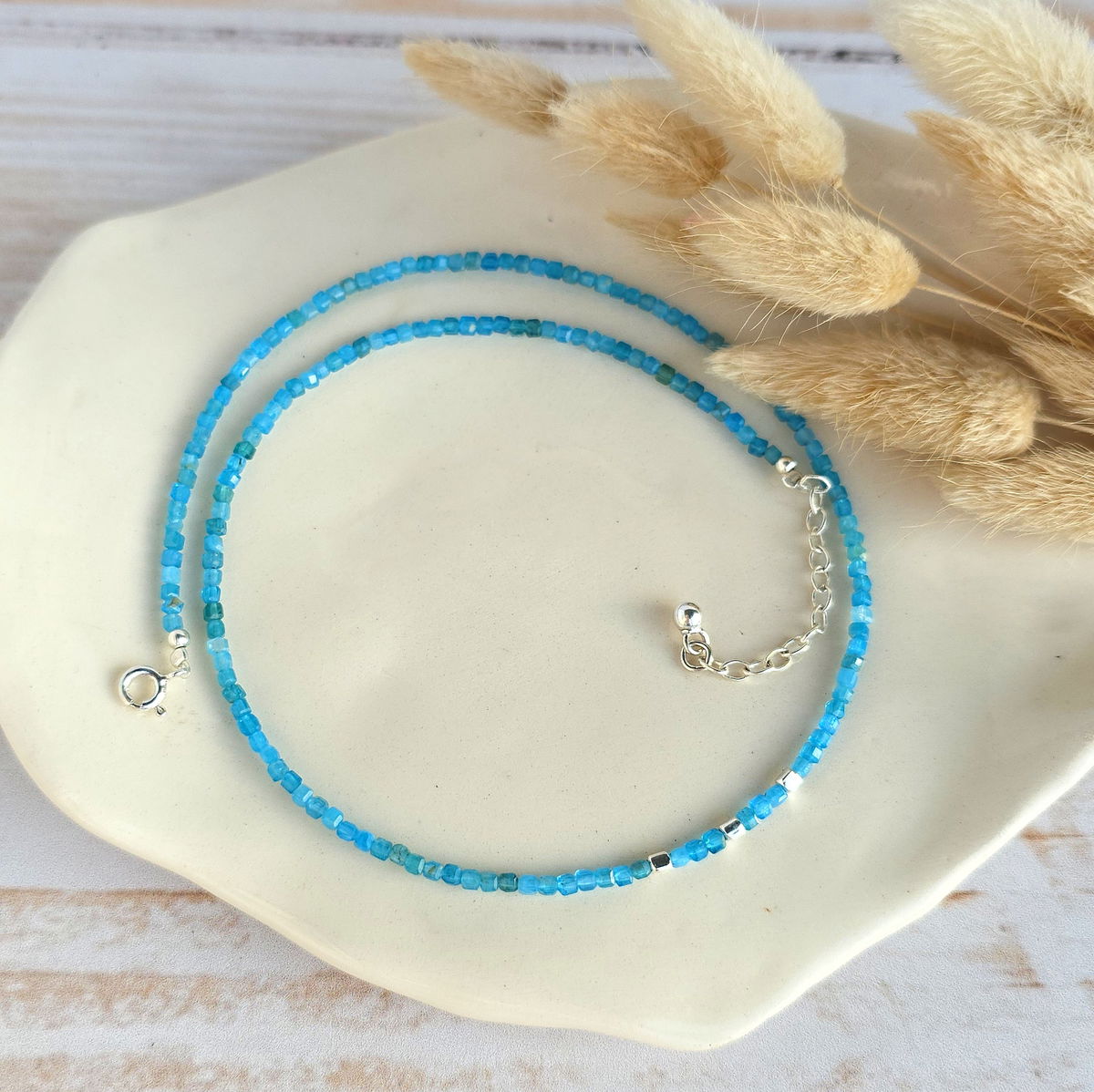 💫Choker hecho con cubitos de piedra apatita natural y detalles en plata 925