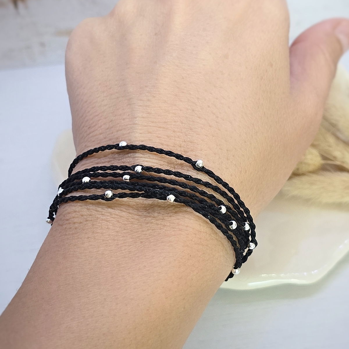 💫Pulsera de 1 metro (6 vueltas) hecha a mano con hilo brasilero y cuentas de plata
