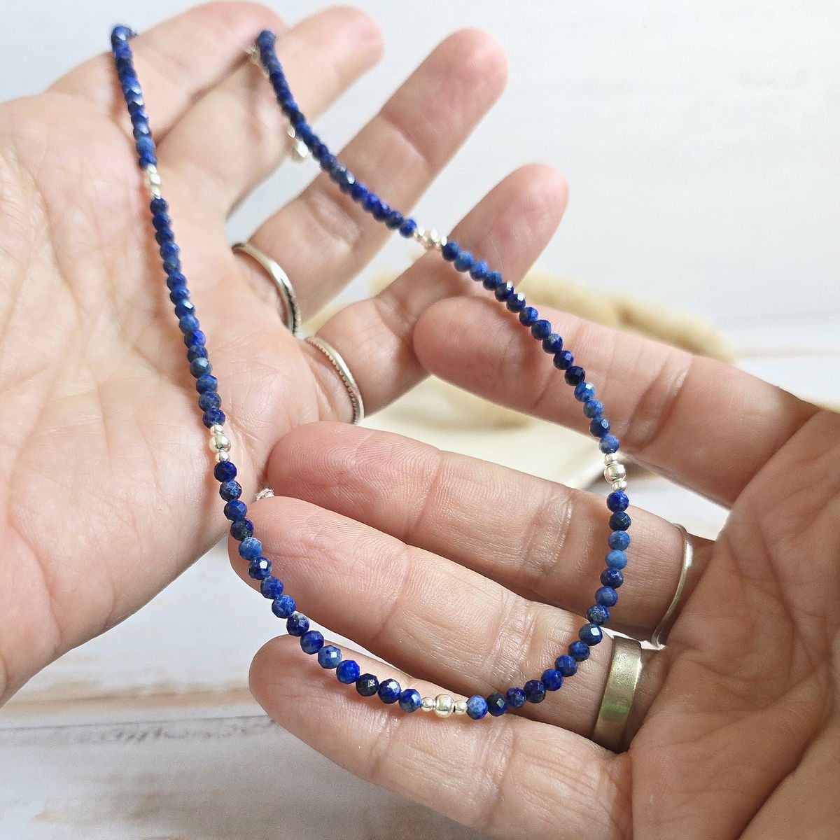 ✨️Choker hecho con piedra facetada de Lapislázuli natural y cuentas de plata