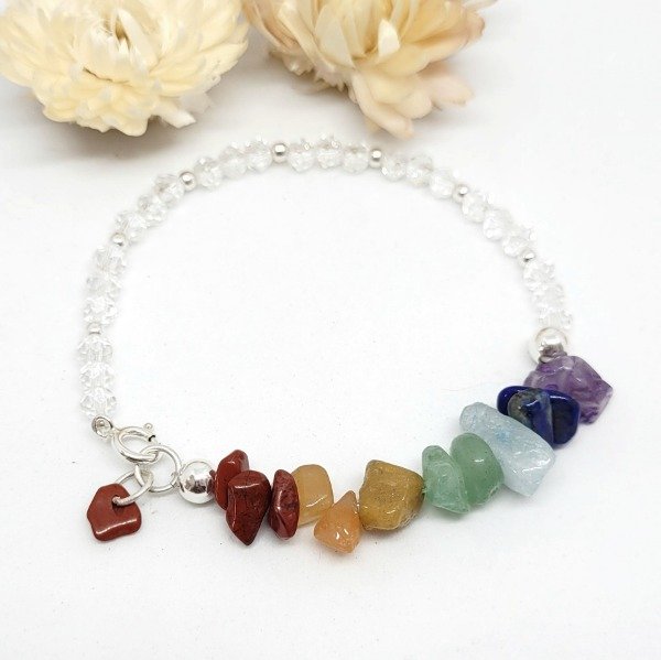 🌈✨ Esta pulsera combina las piedras naturales asociadas a cada uno de los chakras, ayudando a equilibrar la energía del cuerpo y la mente. Se cree que cada piedra favorece un aspecto distinto: la vitalidad, la creatividad, la confianza, el amor, la comunicación, la intuición y la conexión espiritual. Es una pieza vibrante que no solo acompaña tu estilo, sino también tu bienestar energético.