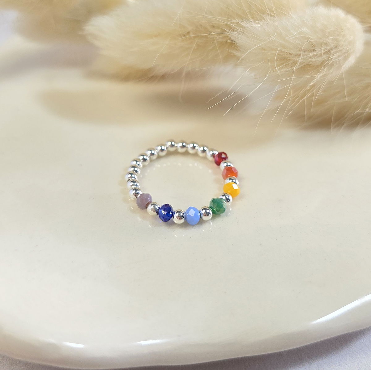 Anillo bolitas plata 7 chakras