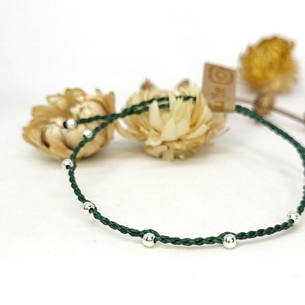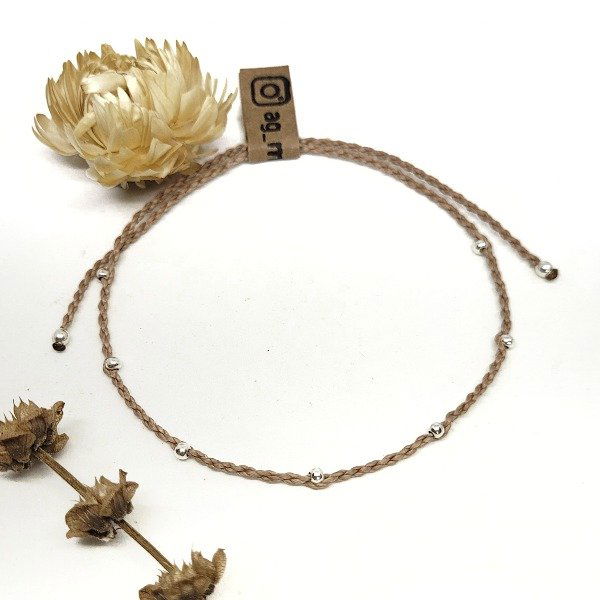 Tobillera de hilo encerado brasilero con bolitas de plata.