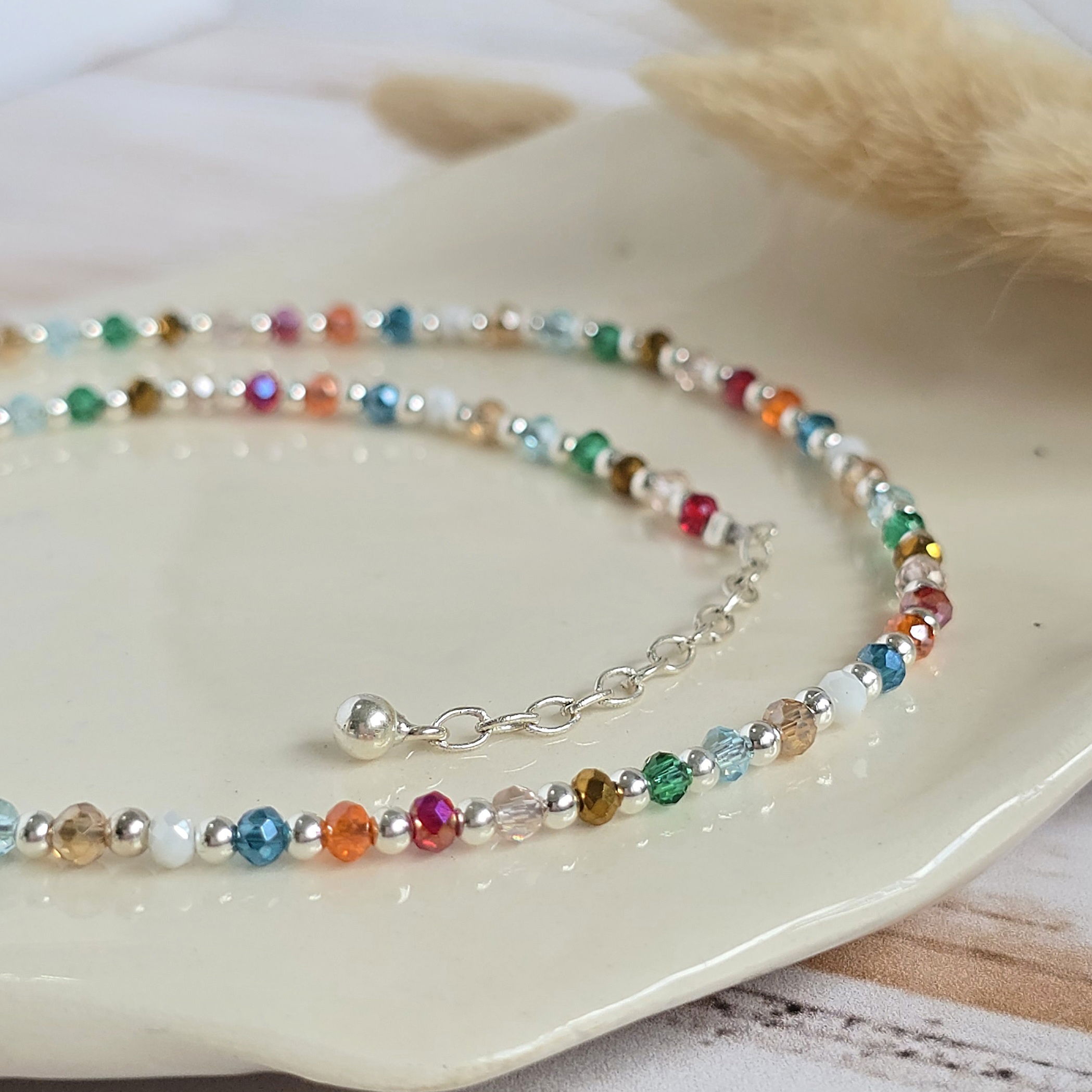✨️Choker de cristalitos multicolor y bolitas de plata