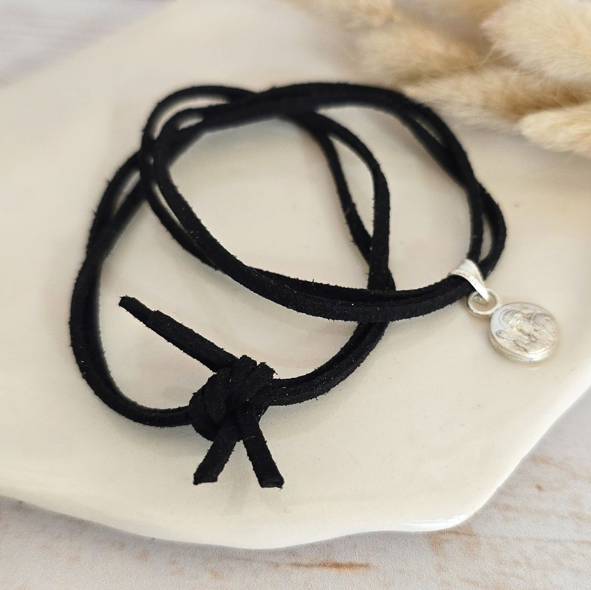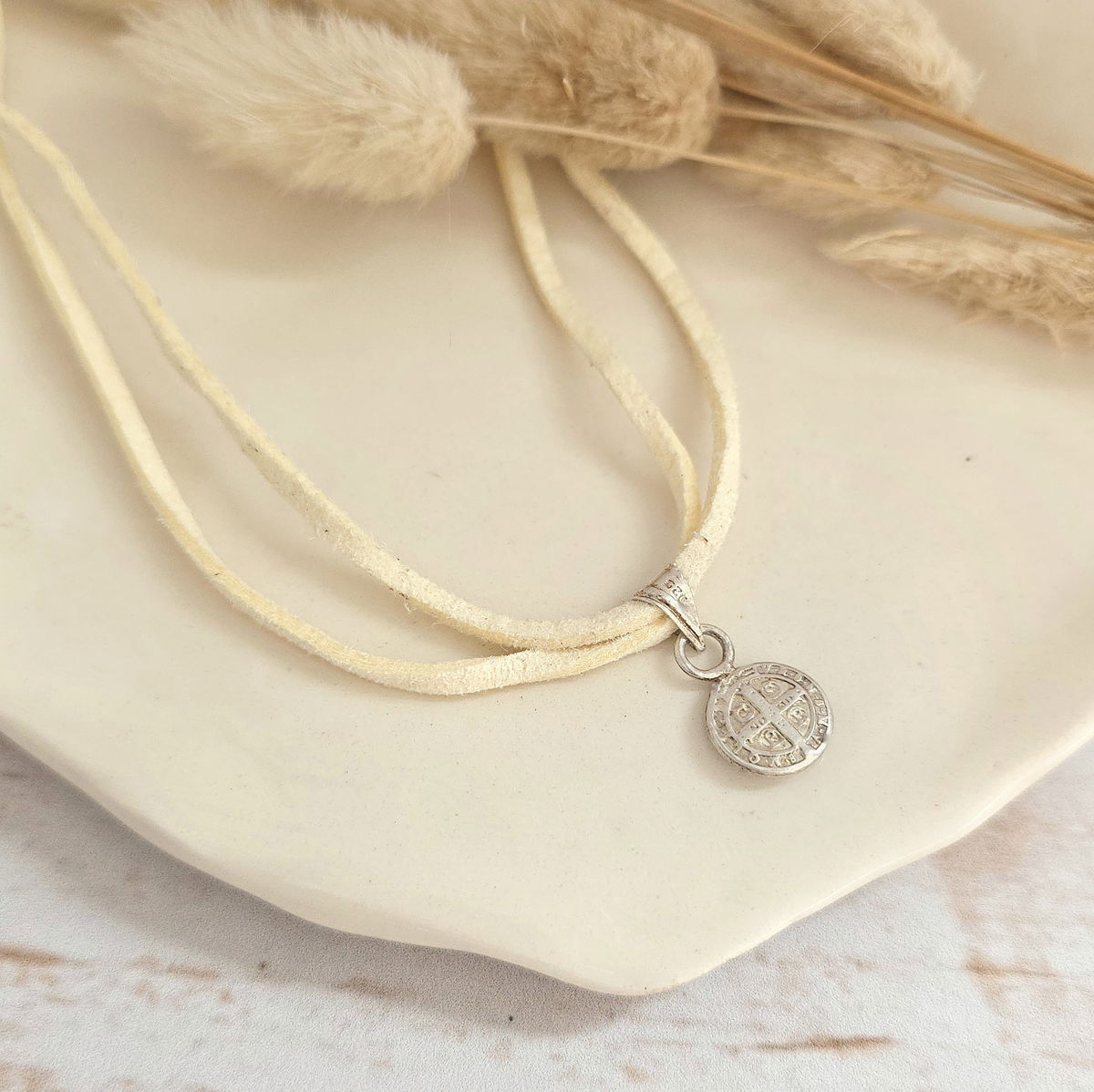 Choker de gamuza con dije San Benito de plata 925