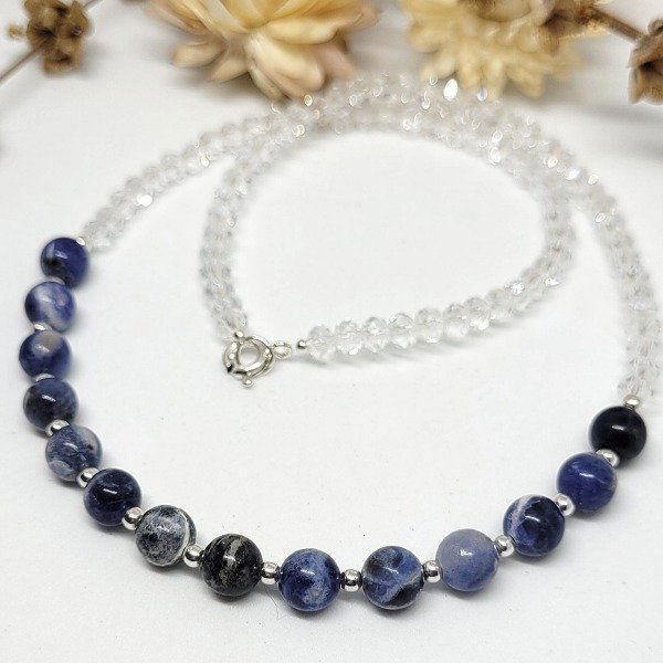 💫Choker con piedra sodalita natural de 6mm, cuentas de plata y cristal
