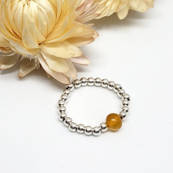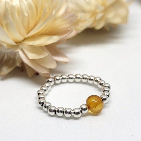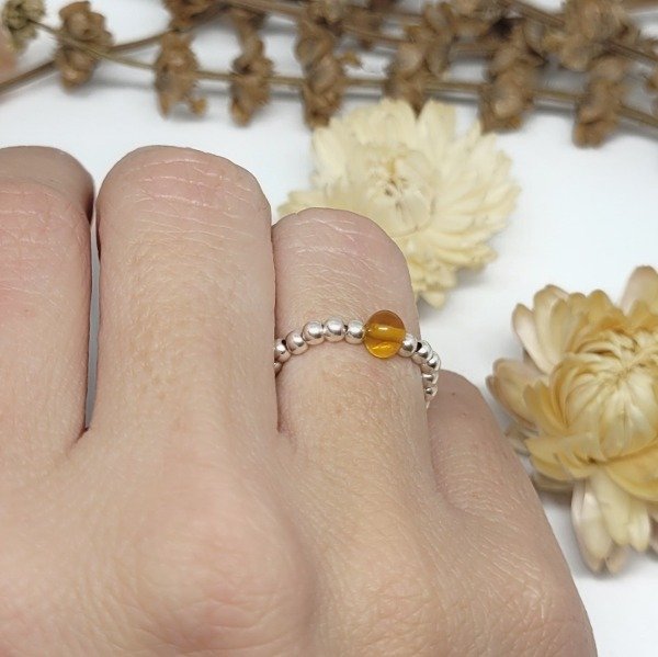 💫Anillo elastizado hecho a mano con bolitas de plata 925 y ámbar natural