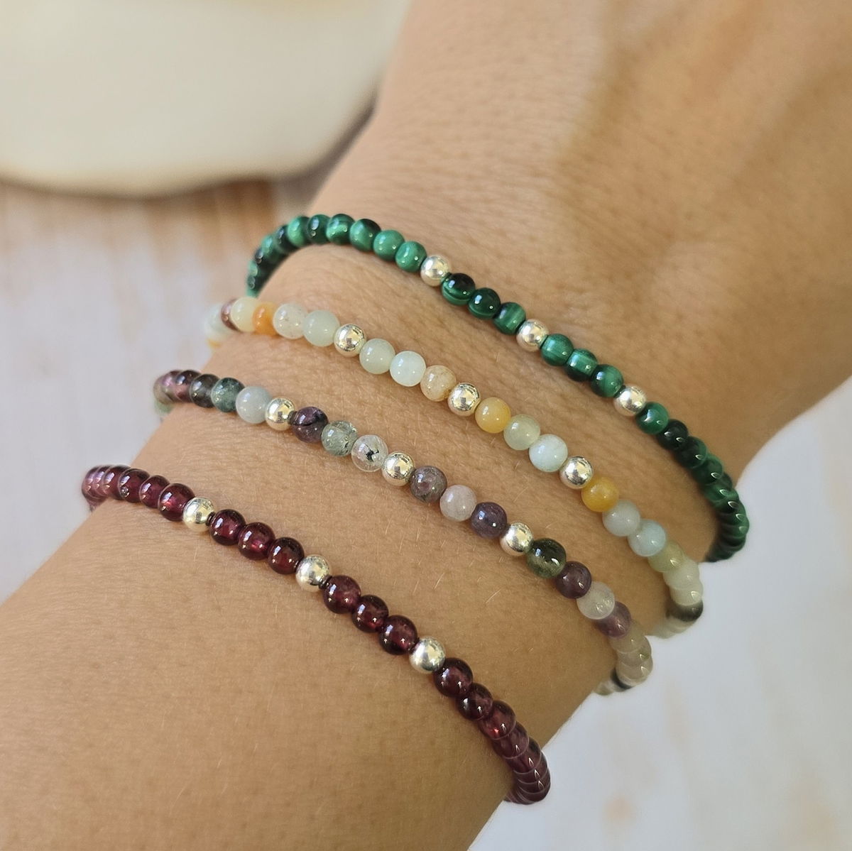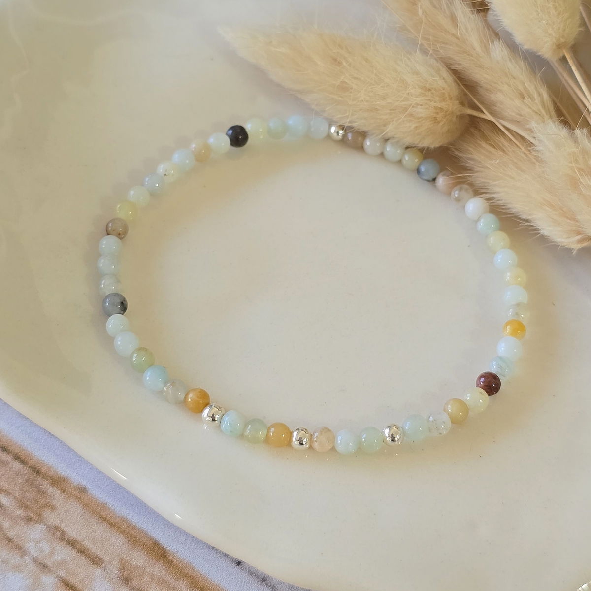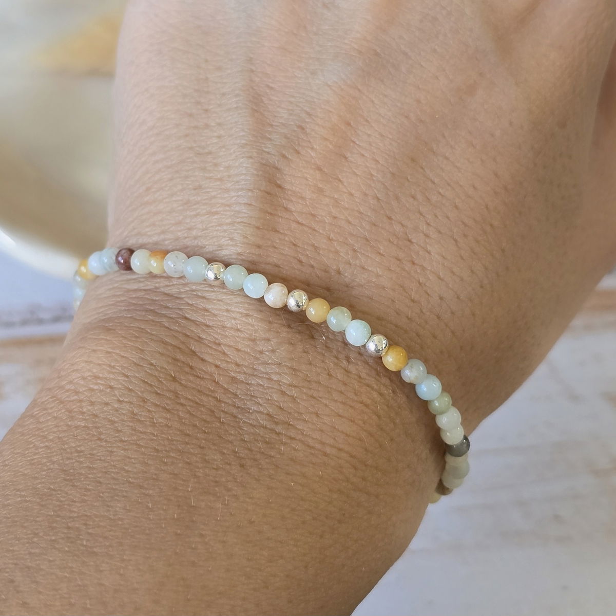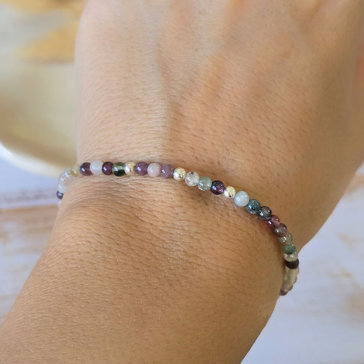 Esta pulsera elastizada está hecha con piedras naturales de 3 mm ó 2mm (según stock) y detalles en plata 925 que aportan luz y armonía. Su diseño flexible se adapta cómodamente a tu muñeca, ideal para acompañarte todos los días.