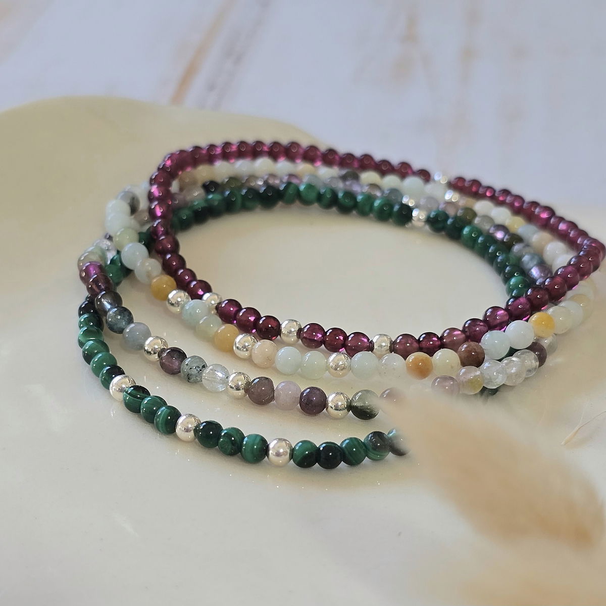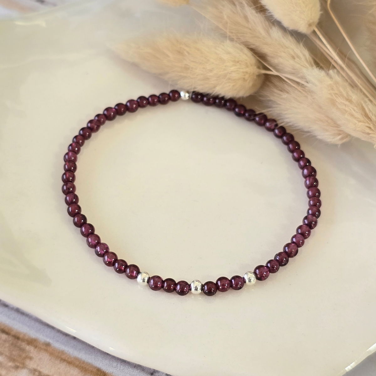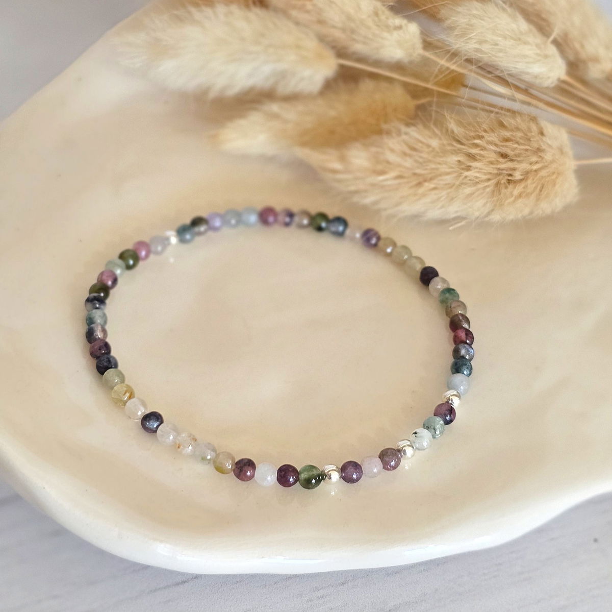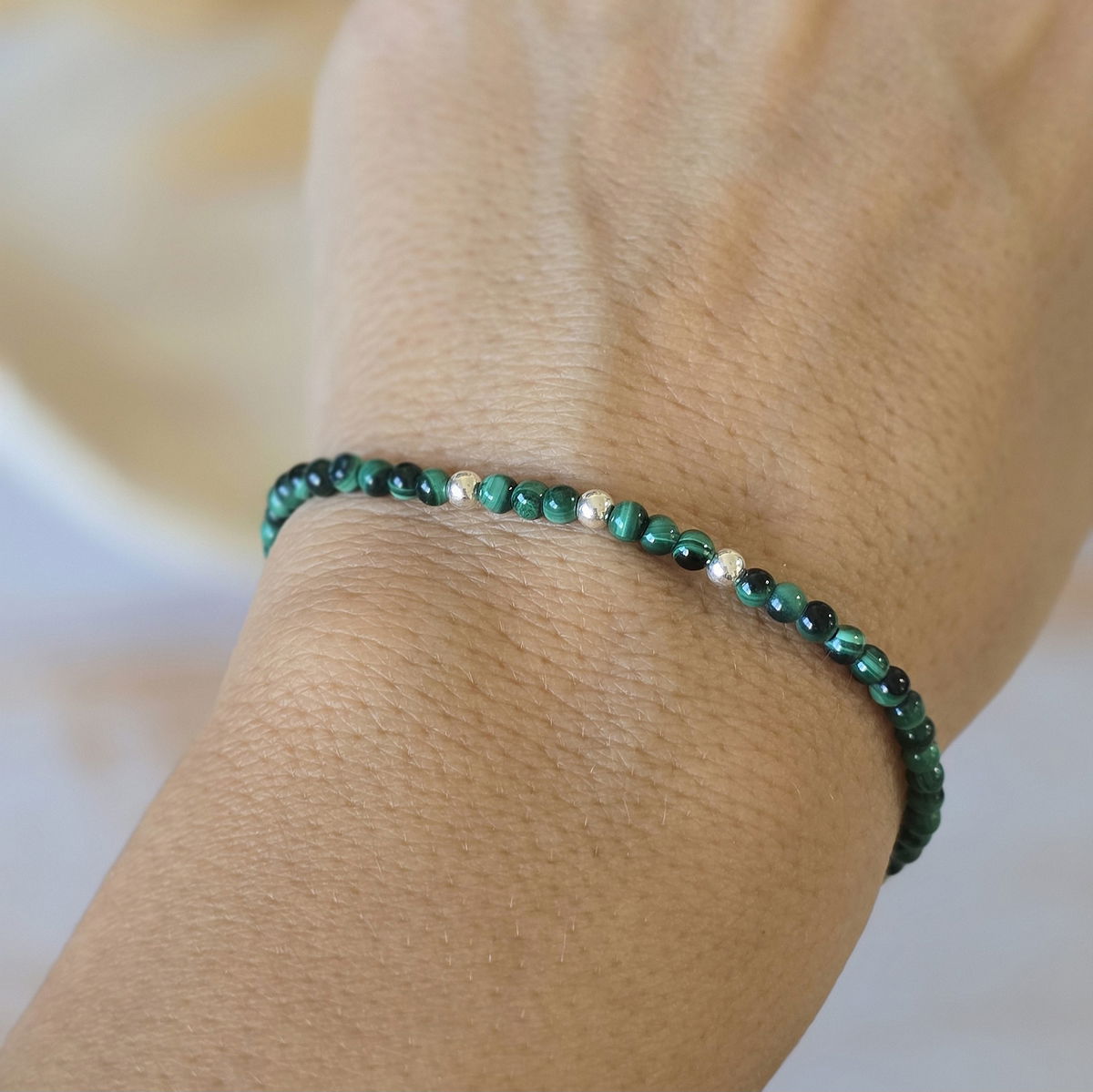 Esta pulsera elastizada está hecha con piedras naturales de 3 mm ó 2mm (según stock) y detalles en plata 925 que aportan luz y armonía. Su diseño flexible se adapta cómodamente a tu muñeca, ideal para acompañarte todos los días.