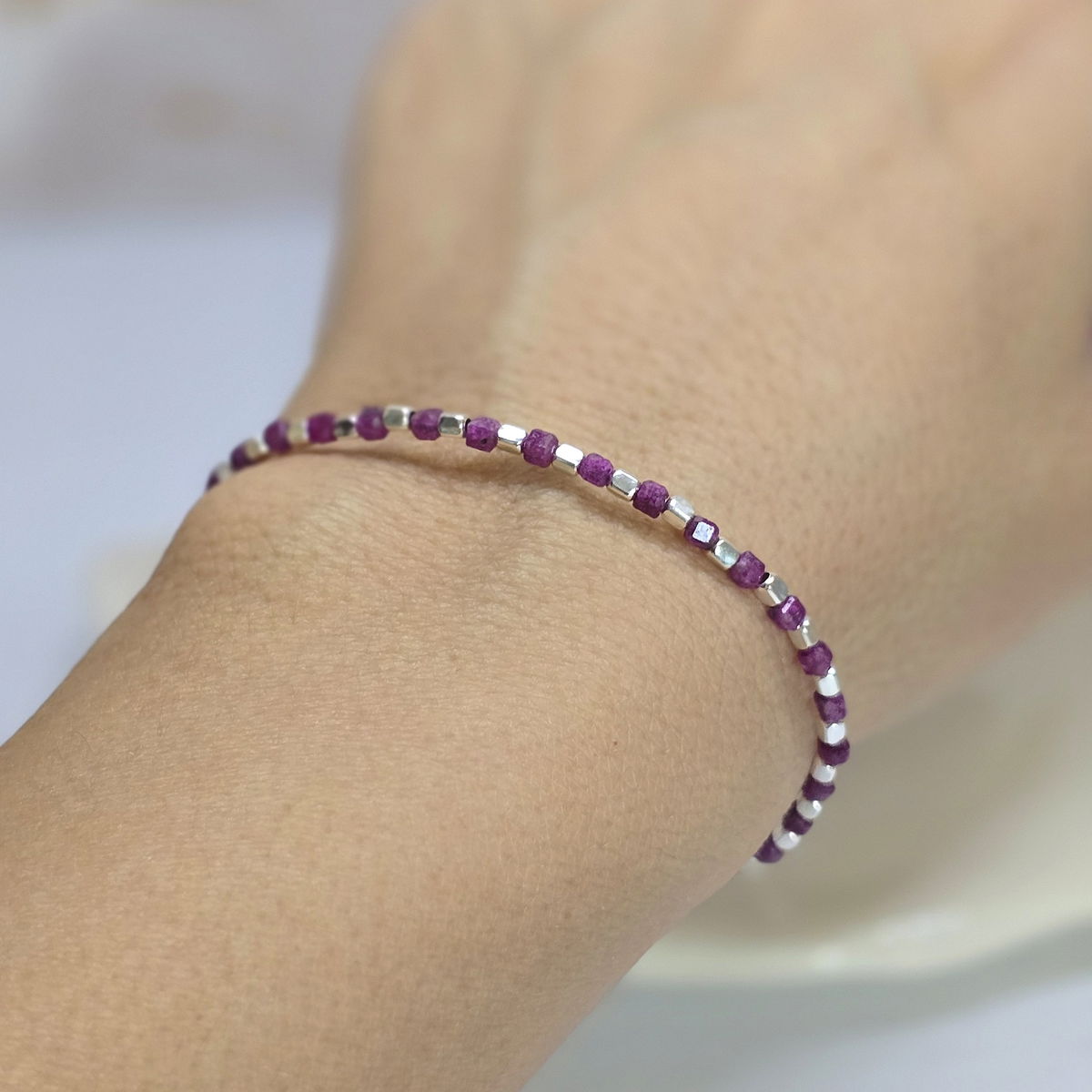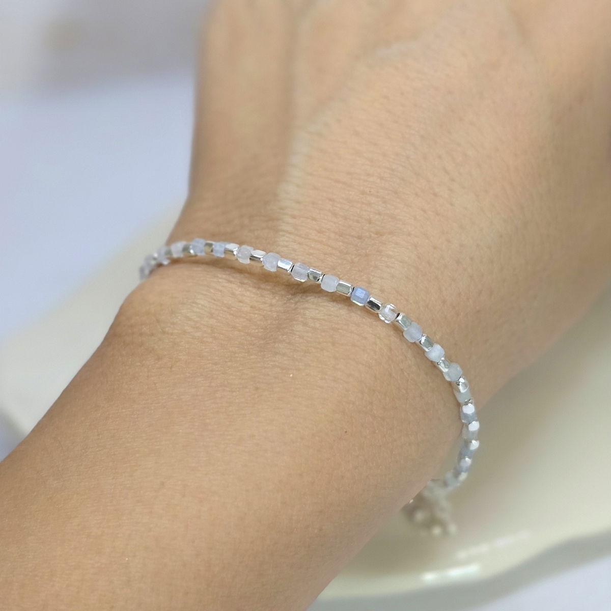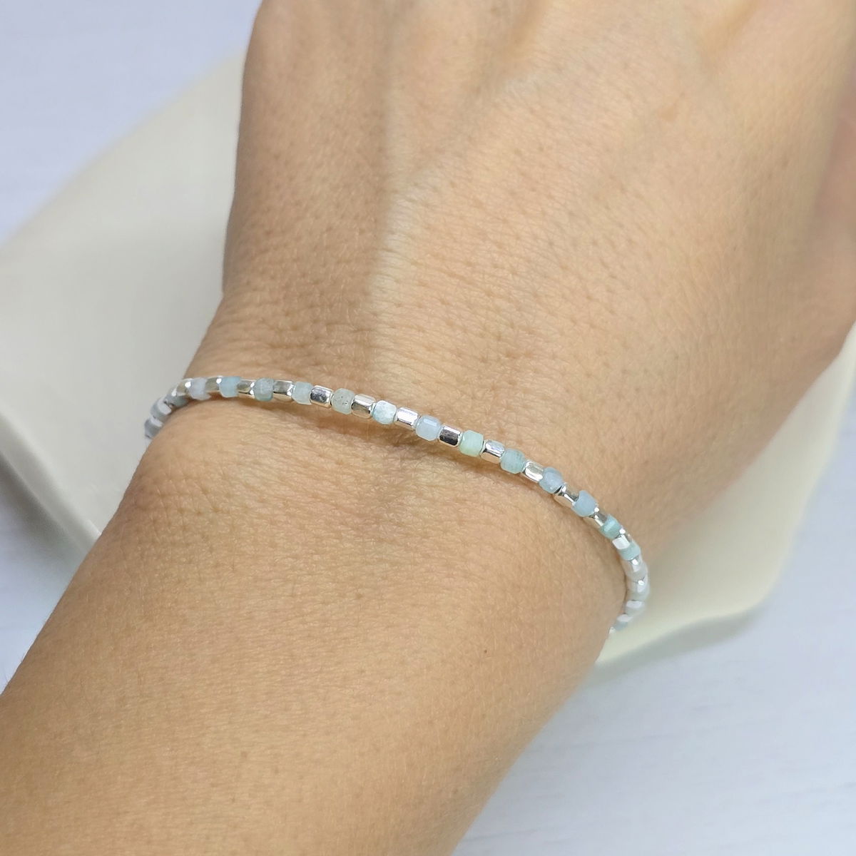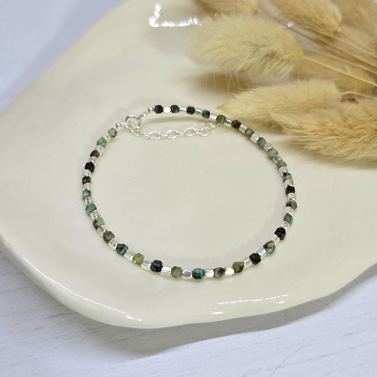đ«Pulsera con cubitos de piedra natural y cubitos de plata 925