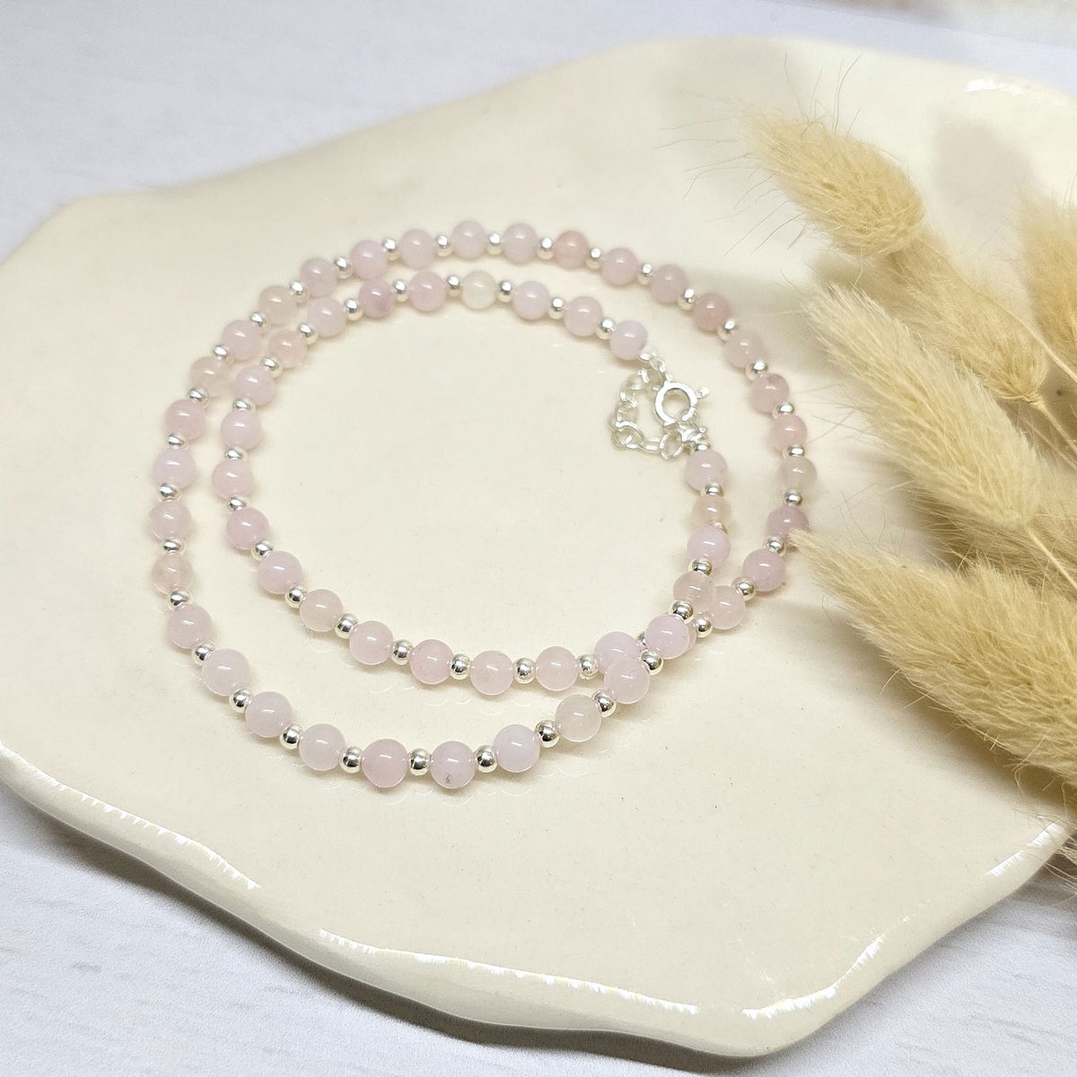 💫Choker con piedra cuarzo rosa natural de 4mm y cuentas de plata 925