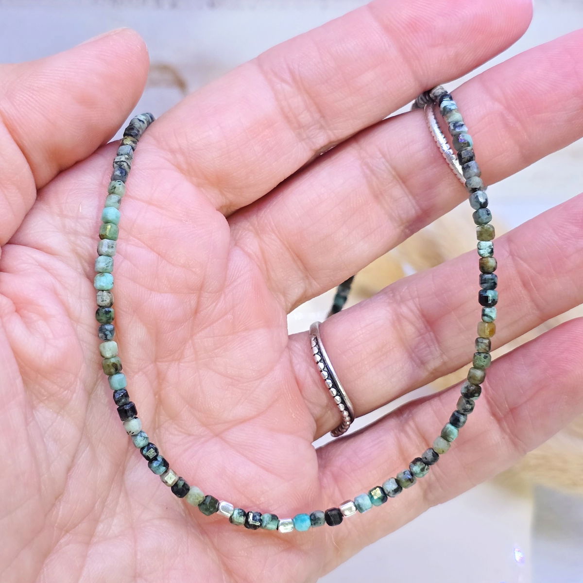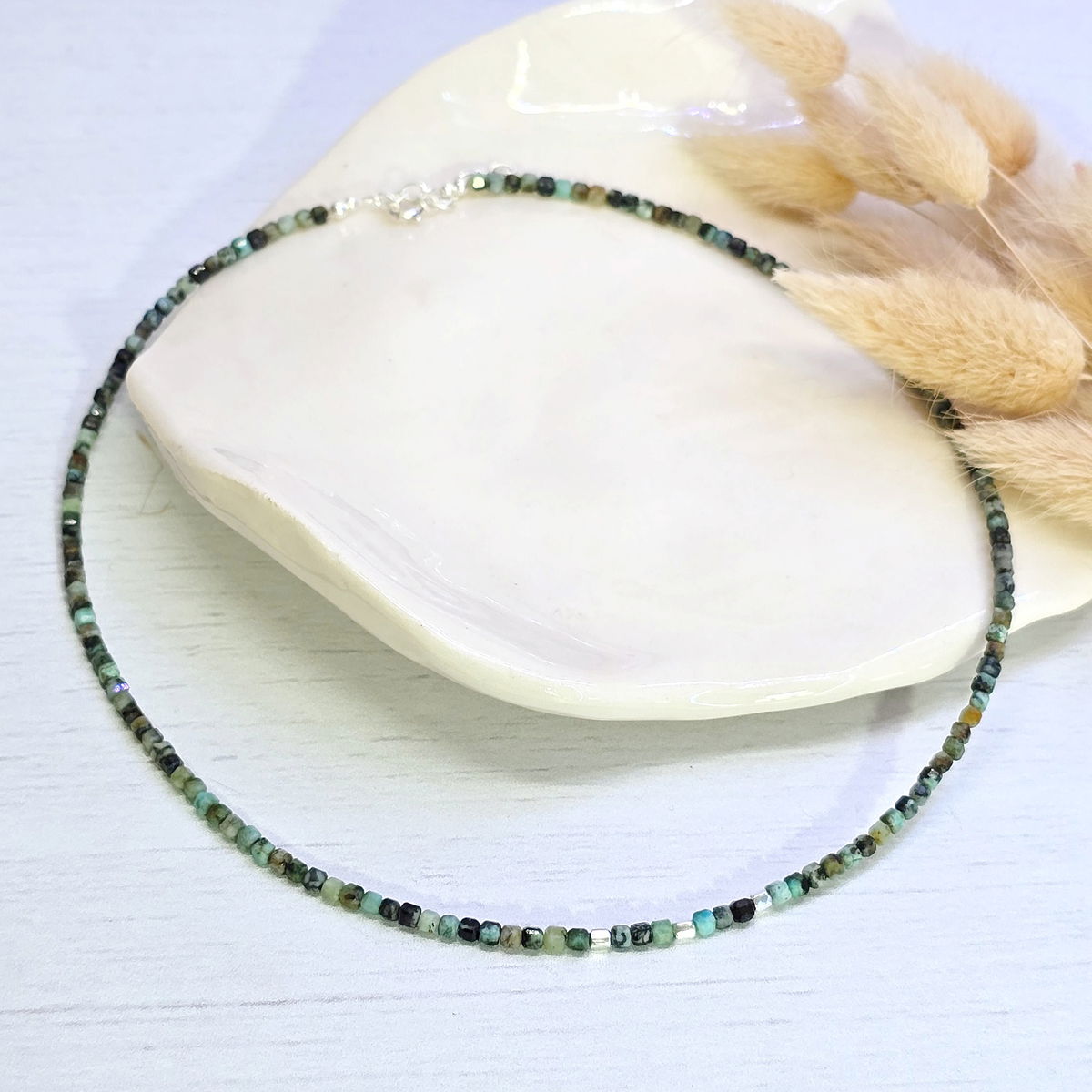 💫Choker hecho con cubitos de piedra turquesa africana (jade)natural y detalles en plata 925