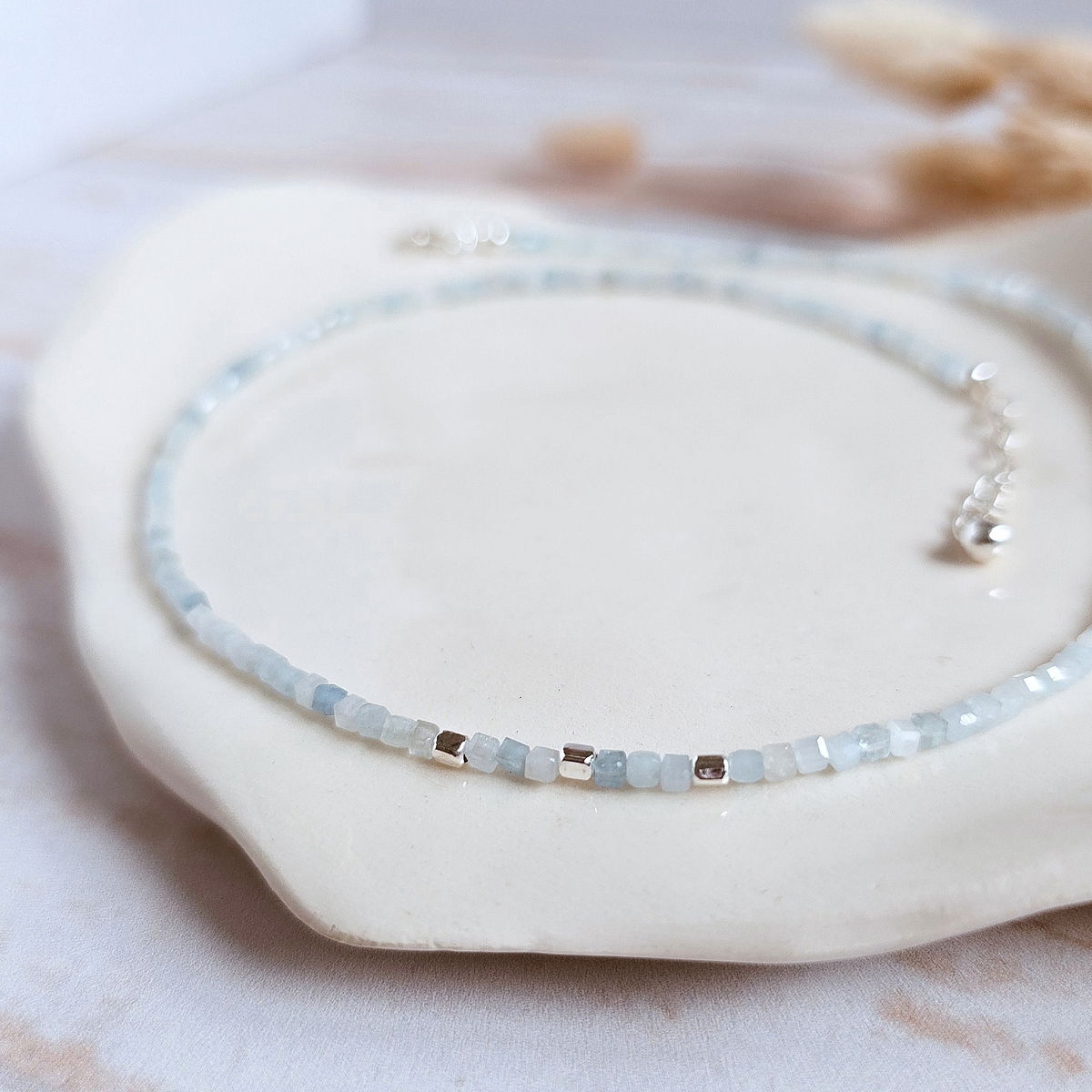 💫Choker hecho con cubitos de piedra aguamarina natural y detalles en plata 925