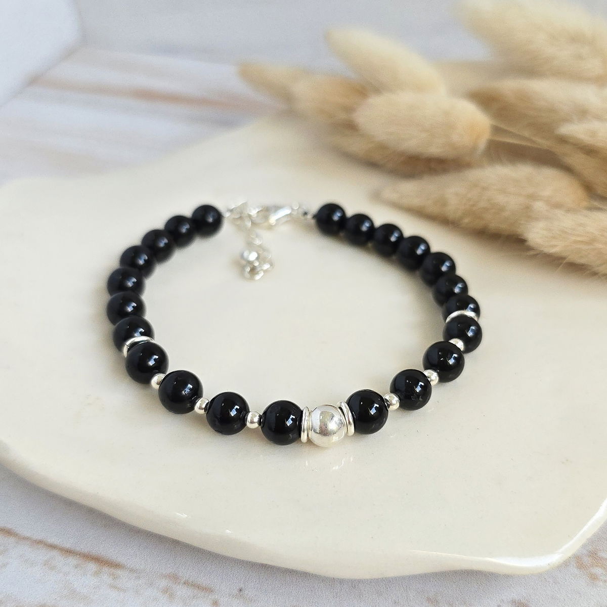 💫Pulsera hecha con piedra turmalina natural y cuentas de plata 925