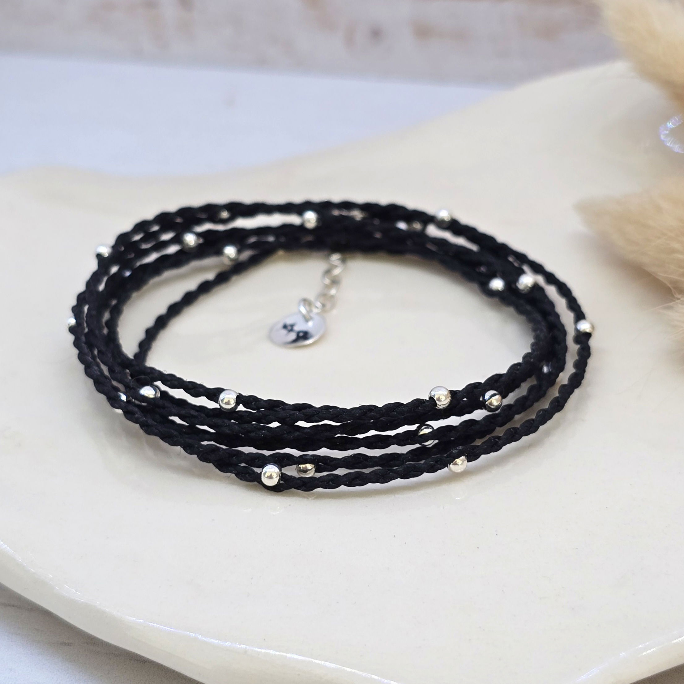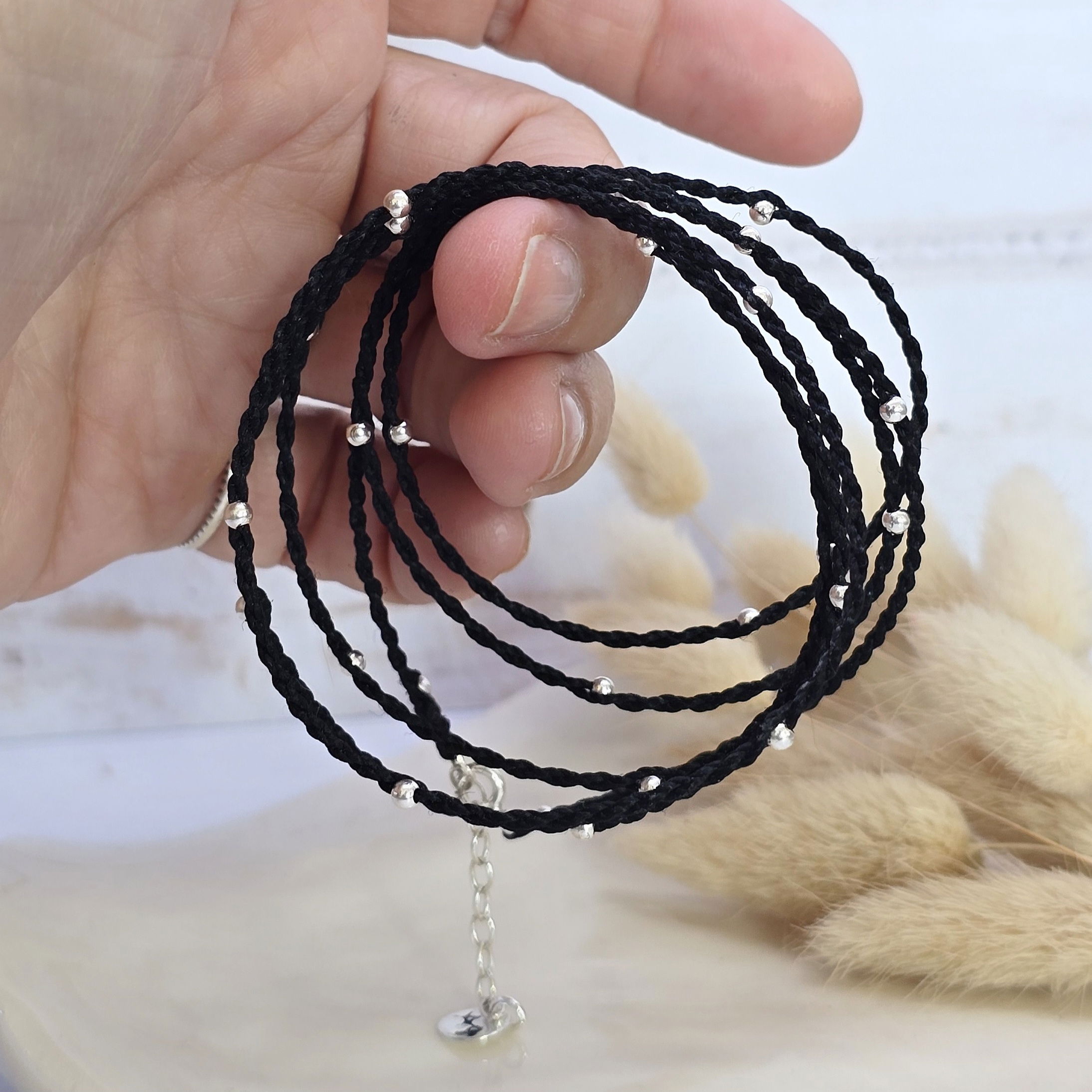 💫Pulsera de 1 metro (6 vueltas) hecha a mano con hilo brasilero y cuentas de plata