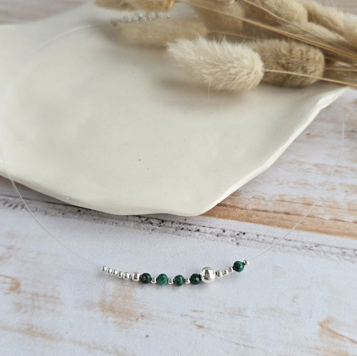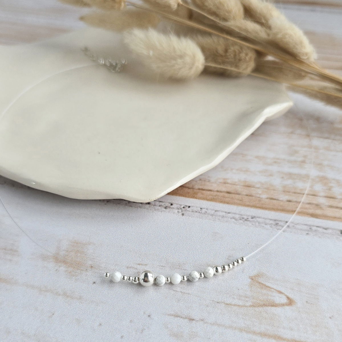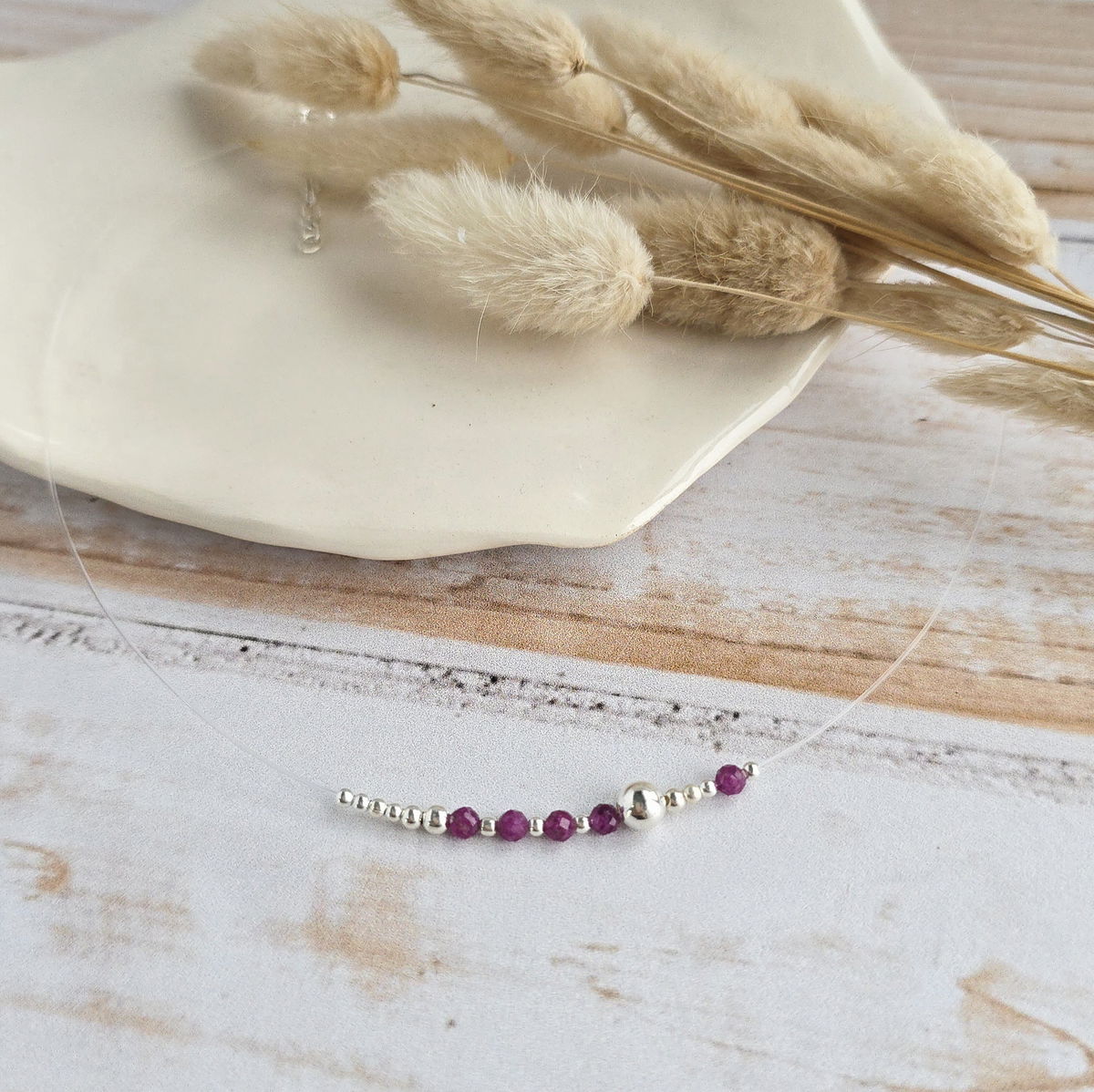 Choker invisible de tanza con cuentas de plata 925 y piedras naturales facetadas.
