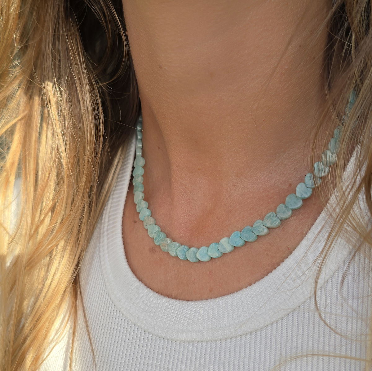 ✨️Choker con corazones de piedra amazonita natural