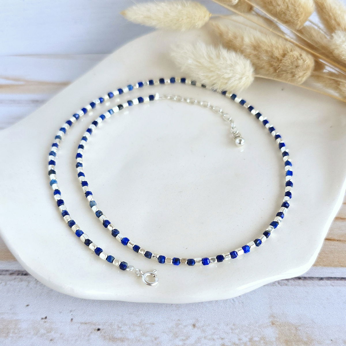 💫Choker hecho con cubitos de piedra natural Lapislázuli y cubitos de plata 925