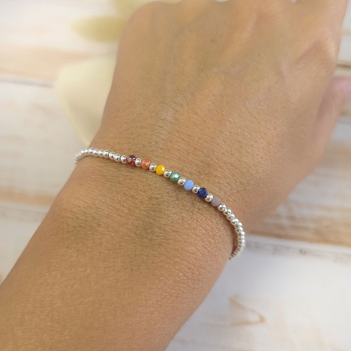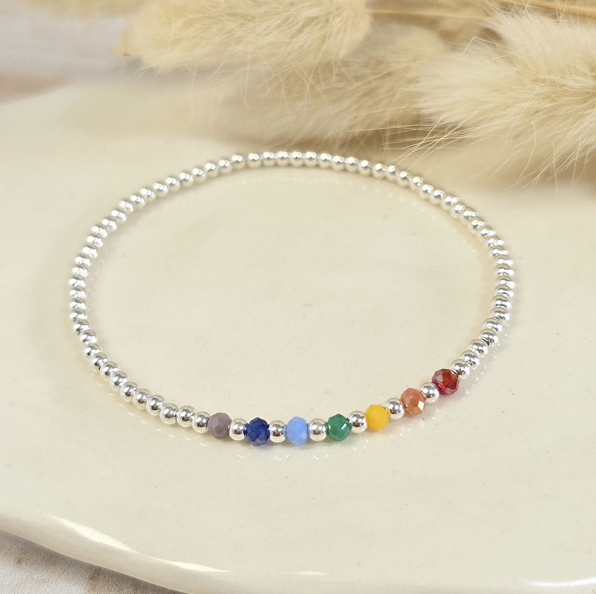 ✨️Pulsera elastizada con bolitas de plata 925 de 2mm y cristalitos